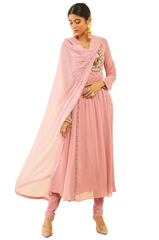 Soch Womens Onion Pink Georgette Floral Embroidered Chudidar Suit Set with Beadwork(OWS2CD2110A)