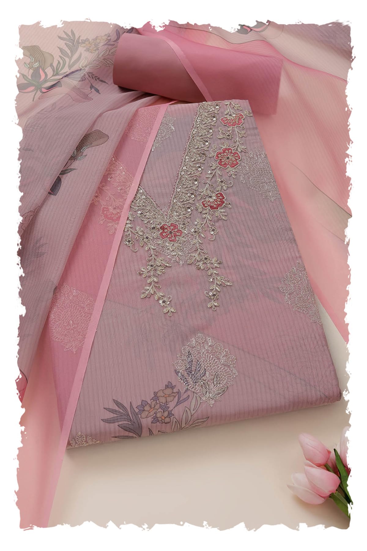 Soch Womens Organza Foil Print Unstitch Dress Material With Sequins