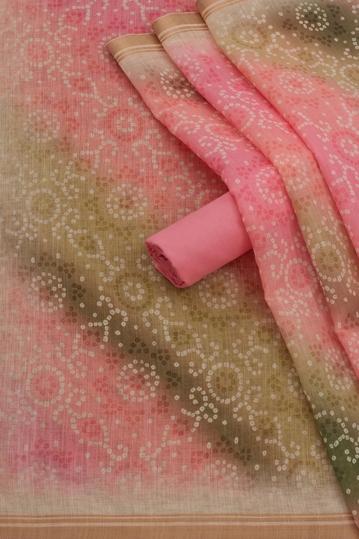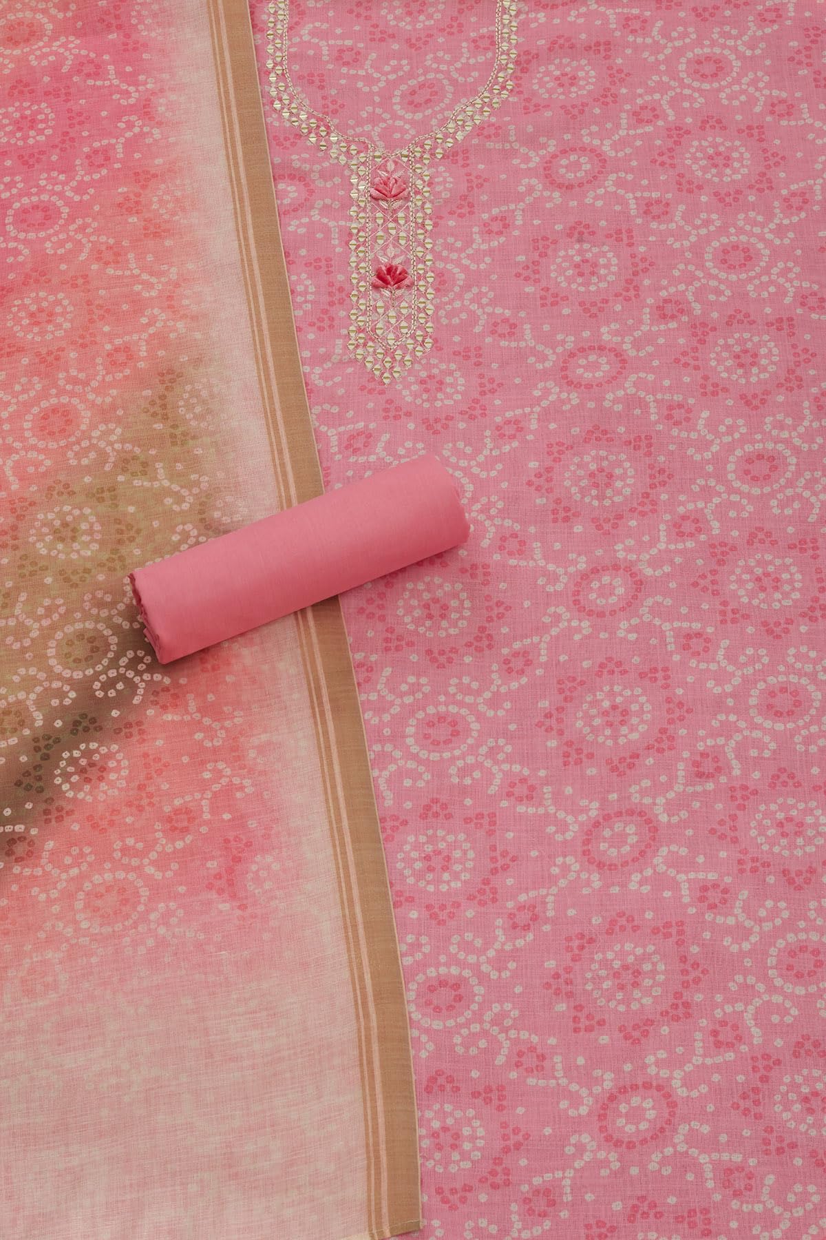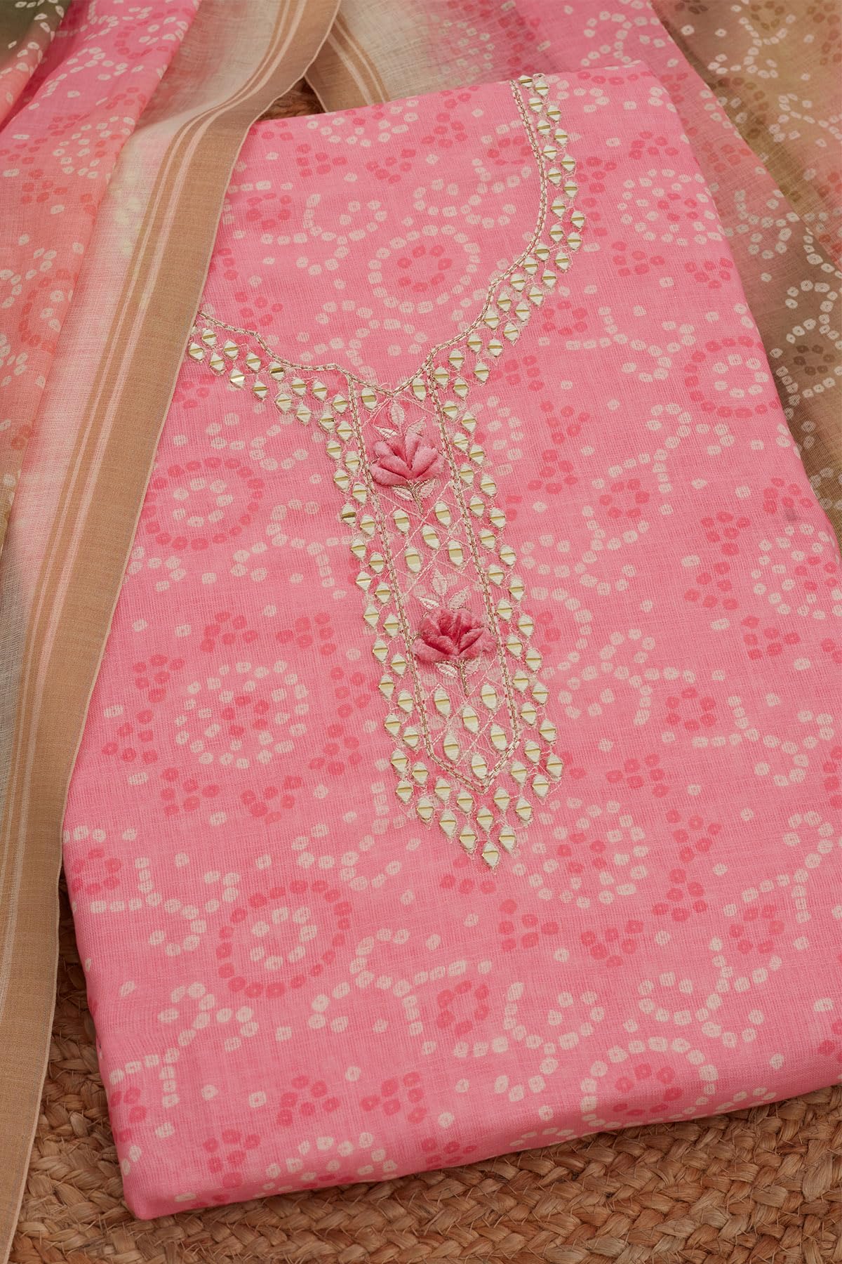 Soch Womens Pink Linen Bandhani Print Unstitch Dress Material With Mirror