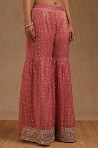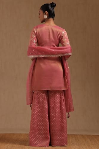 Soch Womens Pink Organza Zari Woven Suit Set Sequins