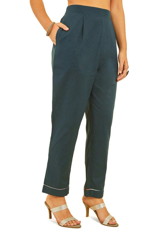 Soch Womens Teal Botanical Chiffon Blend Kaftan Suit with Inner Slip