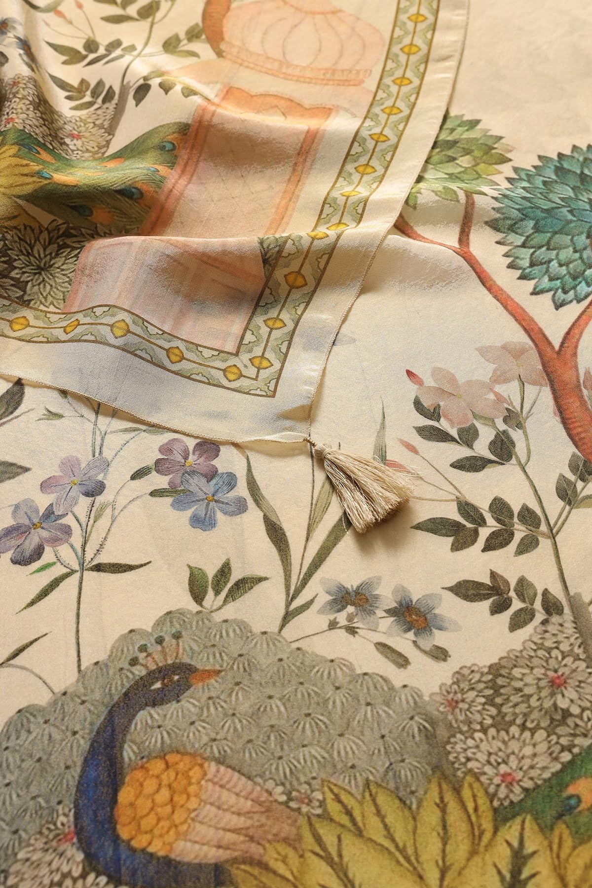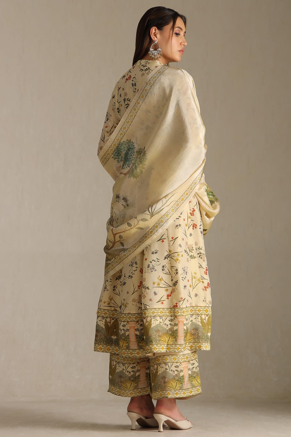Soch Womens Beige Tissue Botanical Print Suit Set With Sequins