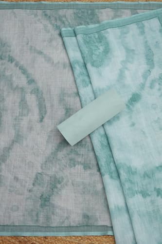 Soch Womens Turquoise Blue Linen Botanical Print Unstitch Dress Material With Sequins