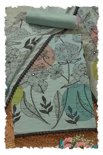 Soch Womens Turquoise Blue Mul Chanderi Floral Print Unstitch Dress Material With Beads