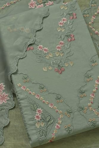Soch Womens Turquoise Blue Organza Shimmer Embroidered Unstitch Dress Material With Thread Work
