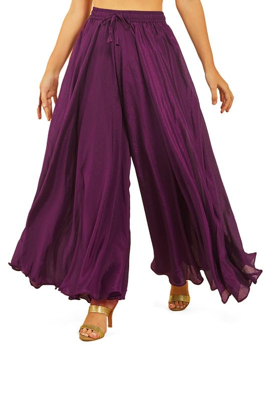 Soch Womens Wine Embroidered Chinon Sharara Suit with Dupatta