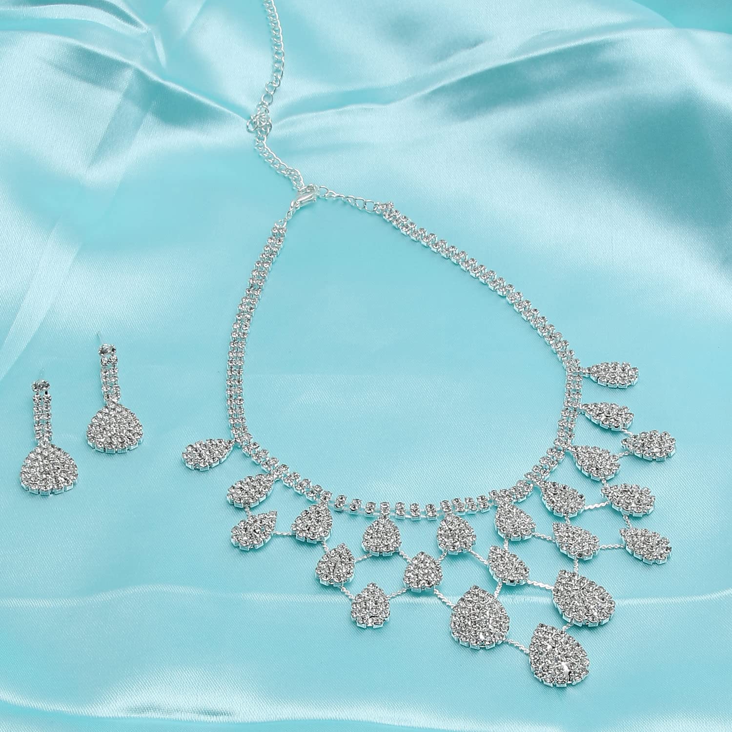 SOHI Silver American Diamond Necklace and Earring, Artificial Stones, Silver Plated Necklace, Necklace with Drop Earrings, Diamond Women & Girl Accessories, stylish cute jewellery, crystal necklace