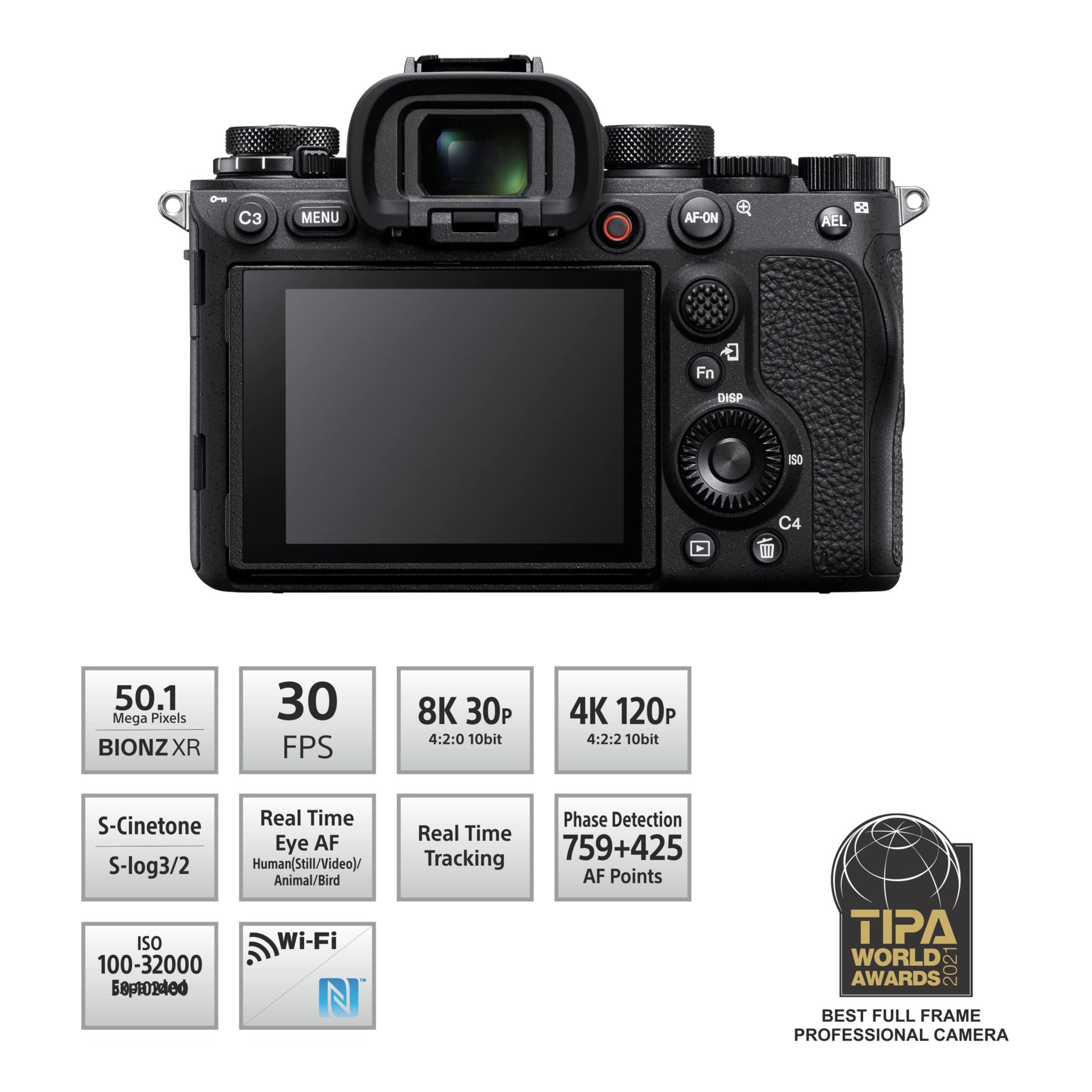 Sony Alpha ILCE-1 Mirrorless Full-Frame Camera | 30 FPS | 50.1 MP | 8K 30P, 4K 120P | Real-time Eye AF, Real time Tracking - Black