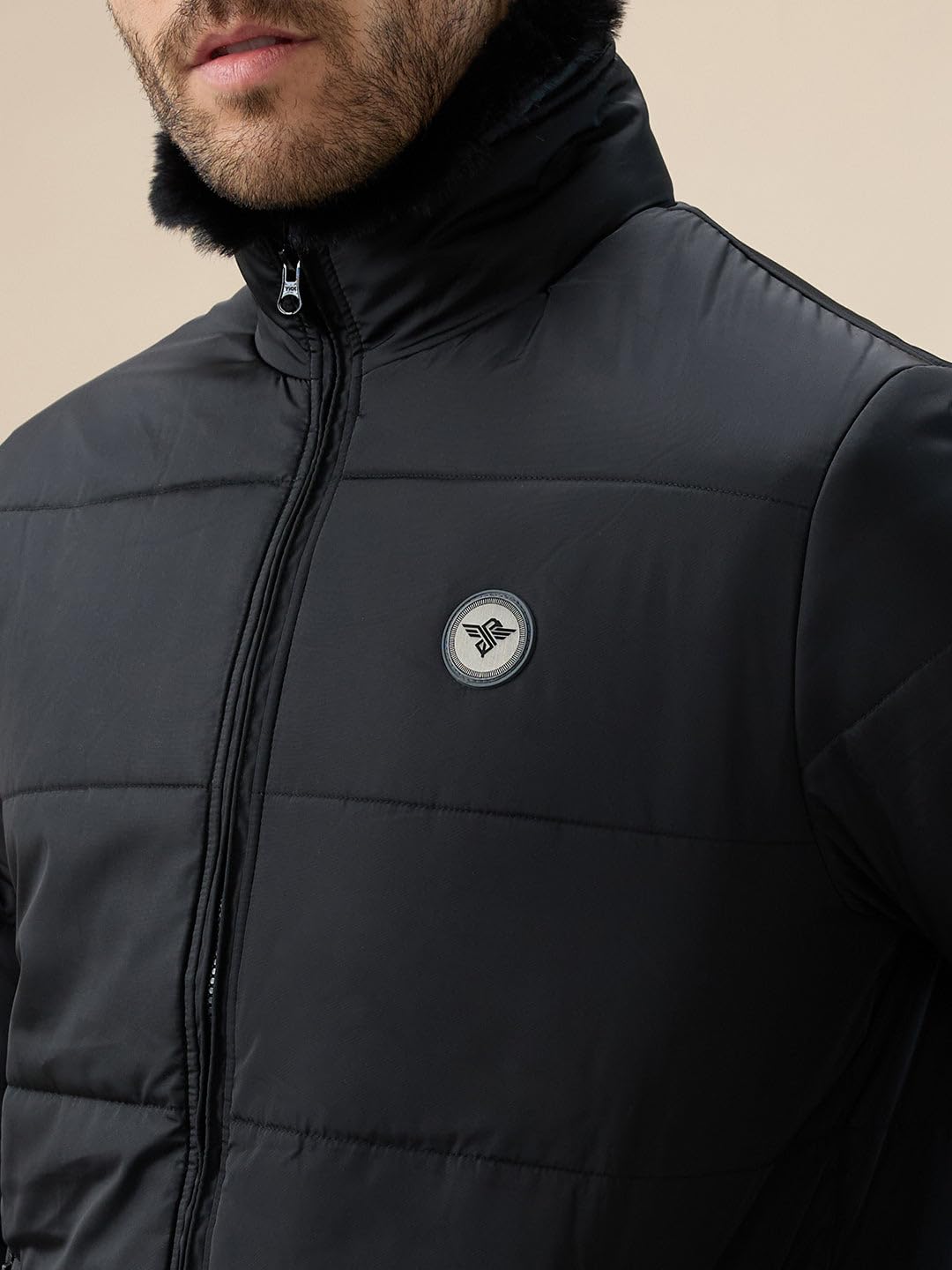 Status Quo Men's Solid Quilted Jacket Faux Fur High Neck Full Sleeves