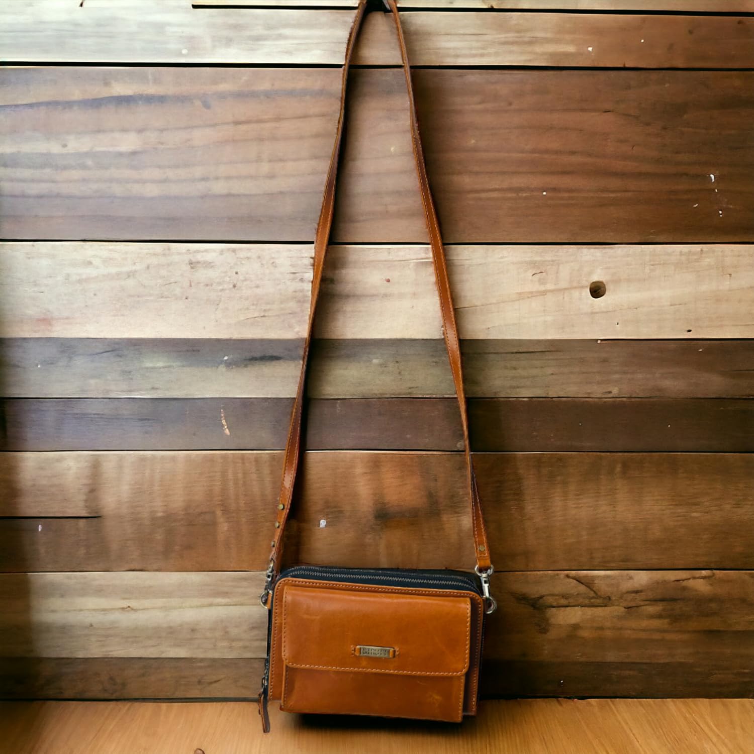 Introducing our versatile Leather Sling Wallet, a stylish convergence of form and function. Handcrafted with precision in light brown genuine leather, this accessory seamlessly transforms from an elegant sling bag to a compact wallet, embodying the essence of practical luxury.