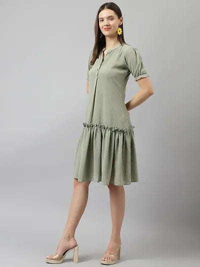 Stylish Olive Georgette Solid A-Line Dress For Women