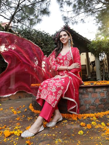 Stylum Women's Floral Printed Rayon Straight Kurta Pant Dupatta Set