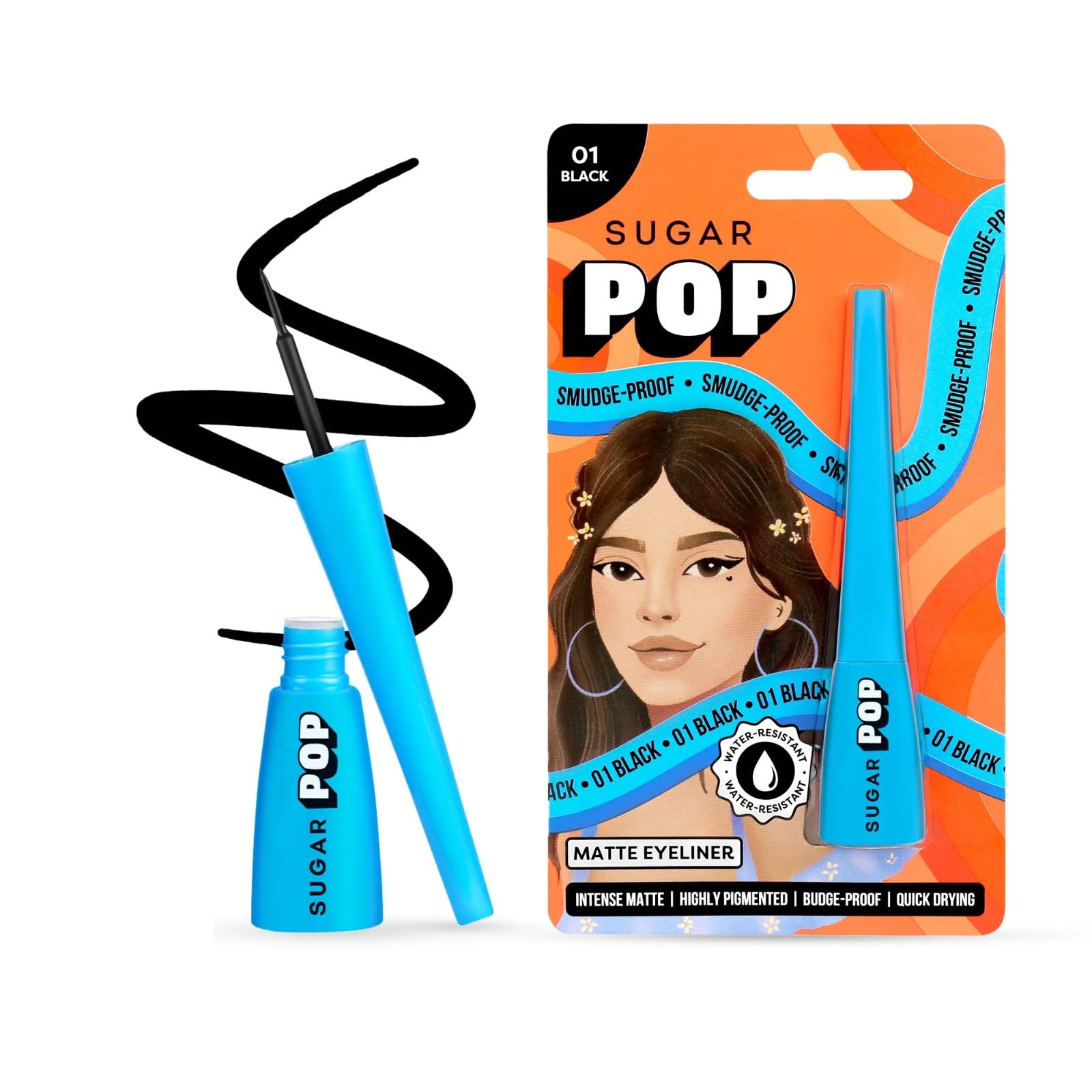 SUGAR POP Matte Finish Eyeliner, Smudge-Proof, Water-Resistant | Longwear Kajal Matte Finish, Intense Dark Kohl Kajal, Smudge Proof, Water Proof Long Lasting - 01 Black