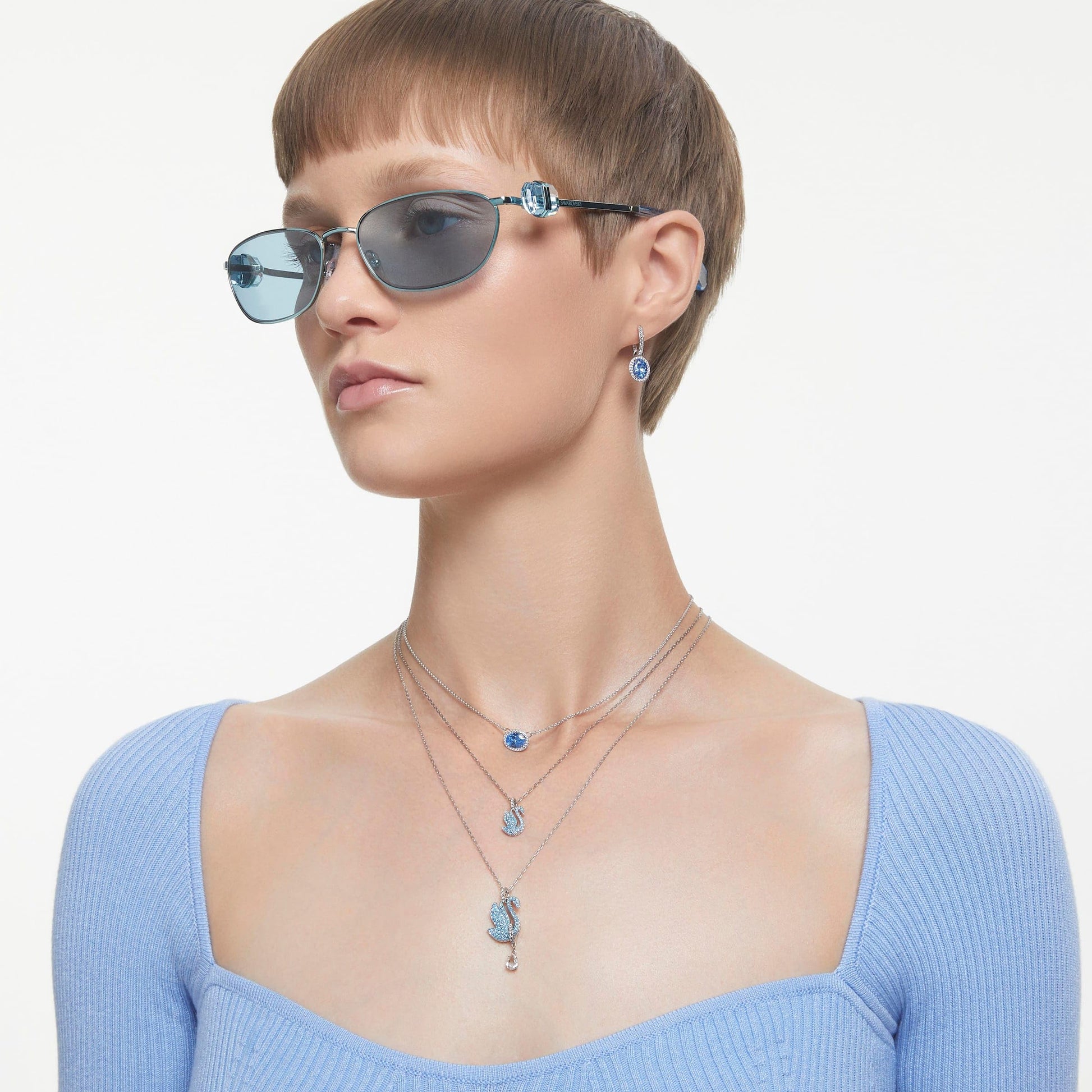 Swarovski Iconic Swan Pendant and Earrings set, Swan, Blue, Rhodium plated