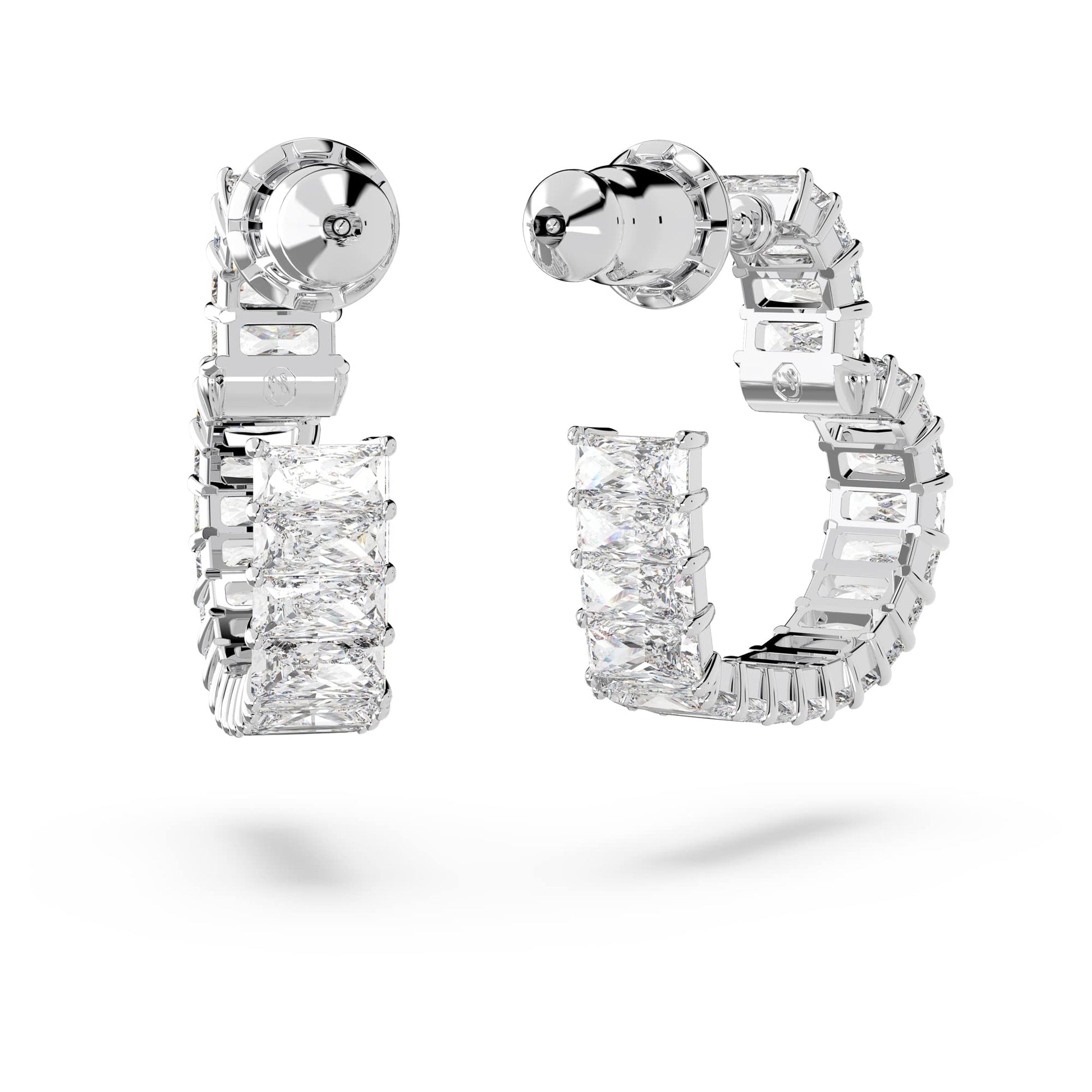 - Items delivered: (1) Pair of Swarovski Matrix hoop earrings, Heart, Small, White, Rhodium plated, complete with Swarovski earring box