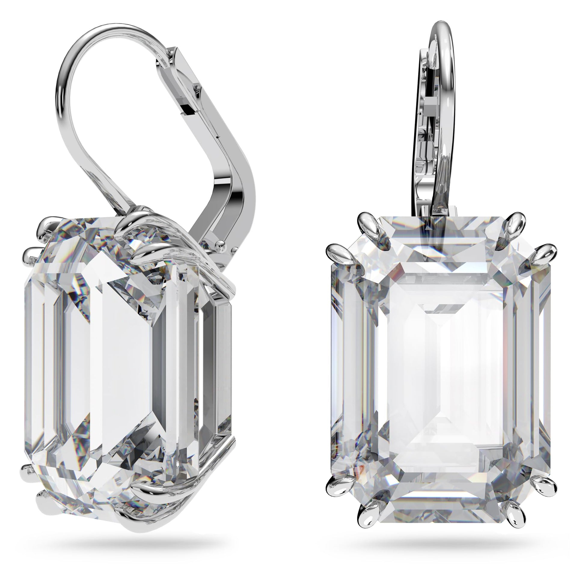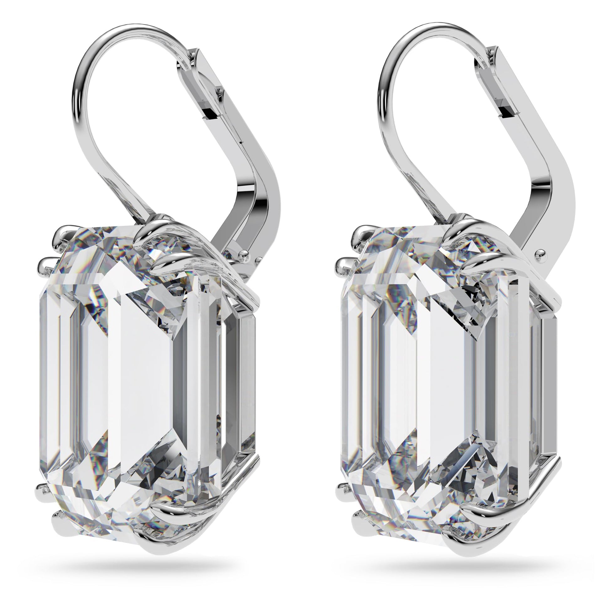 Swarovski Millenia drop earrings, Octagon cut, White, Rhodium plated