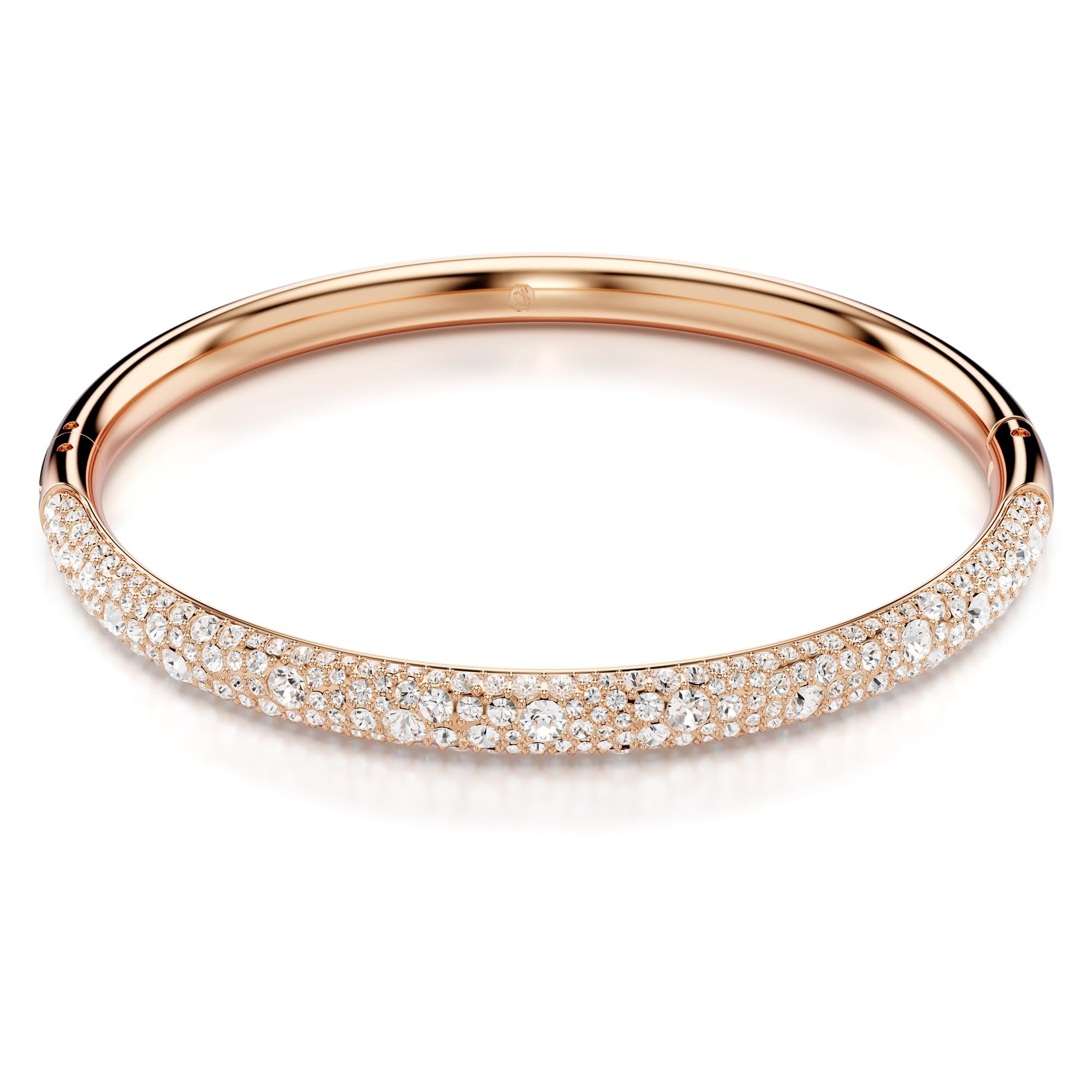 - Bold and beautiful: This dazzling Meteora bangle will infuse your style with stardust. The rose gold-tone plated band wraps gracefully around the wrist and features a snow pavé of clear round crystals in different sizes across the top section.