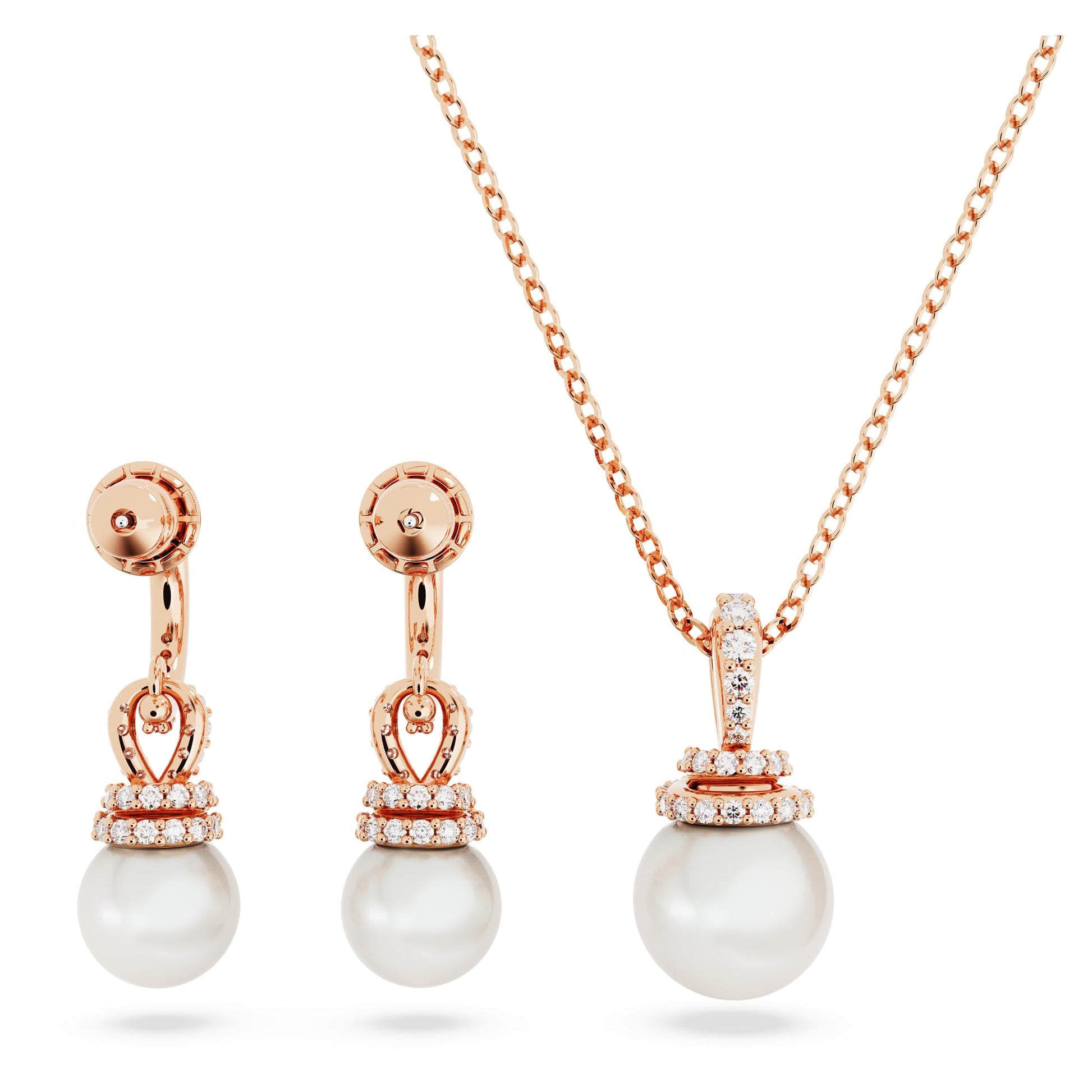 - Uniquely elegant: This hoop earrings and pendant set is the perfect way to add some timeless beauty to your style. Each rose gold-tone plated piece features a radiant Swarovski Crystal Pearl accented with a shimmering pavé of clear Swarovski Zirconia.