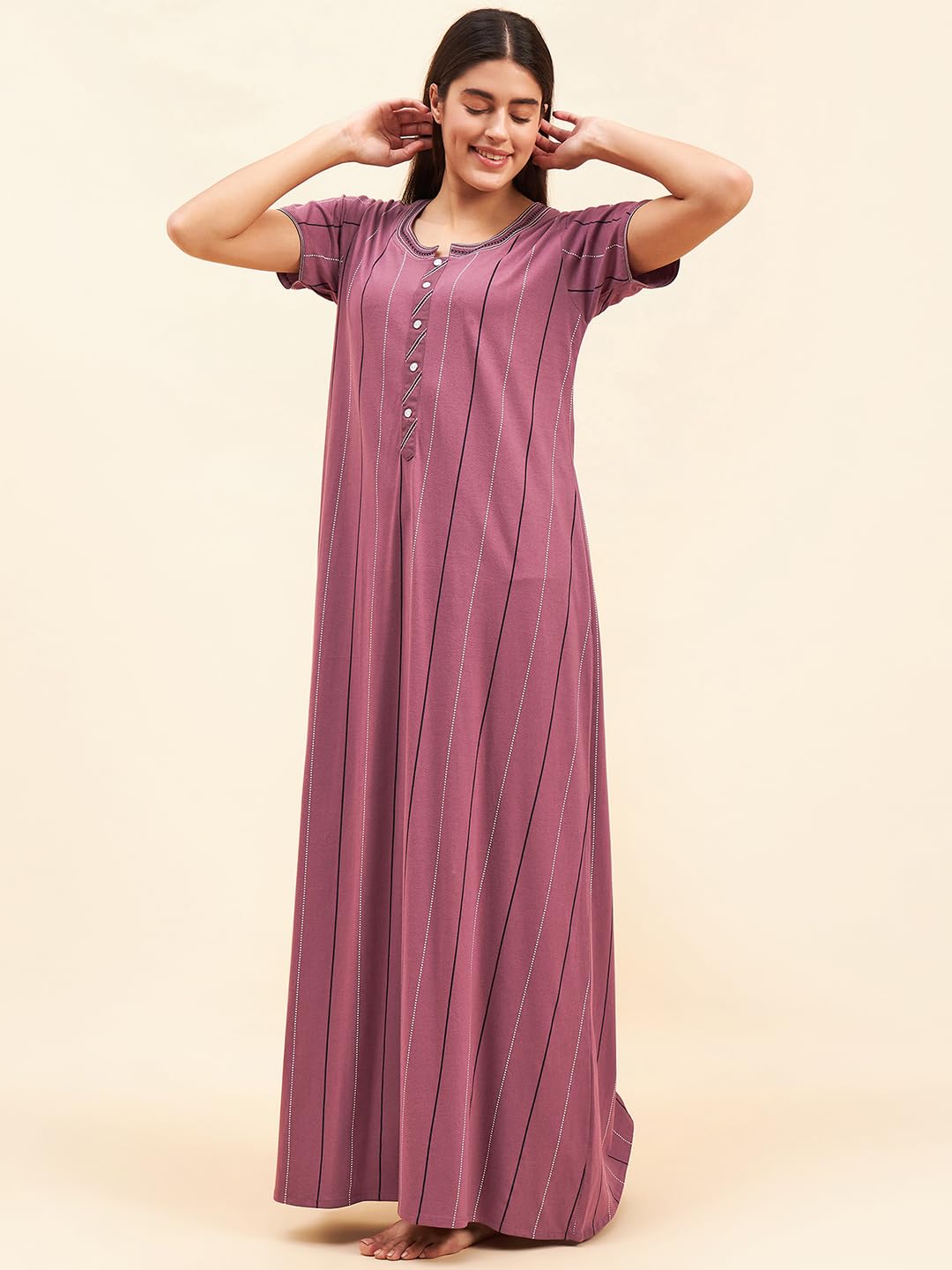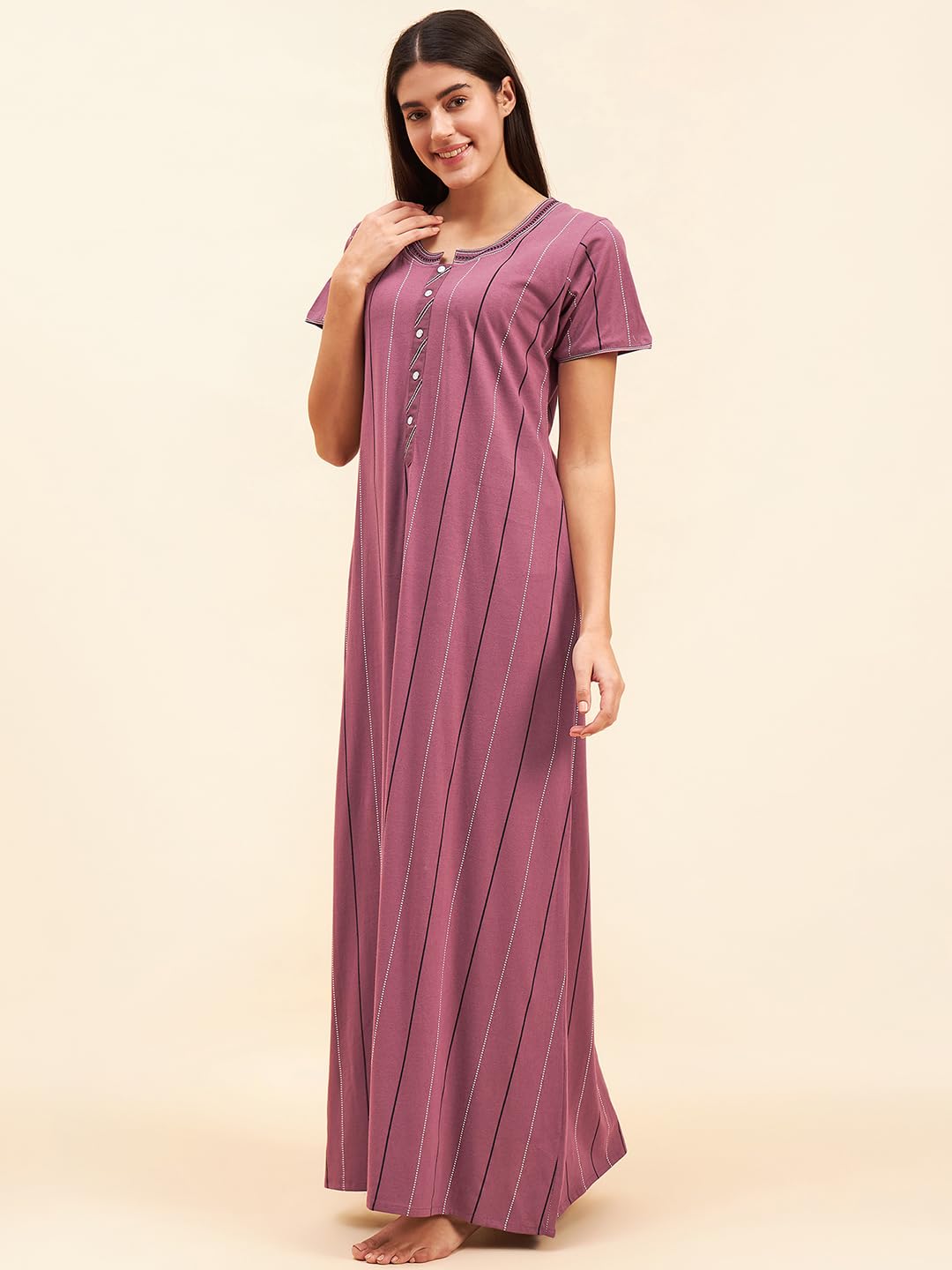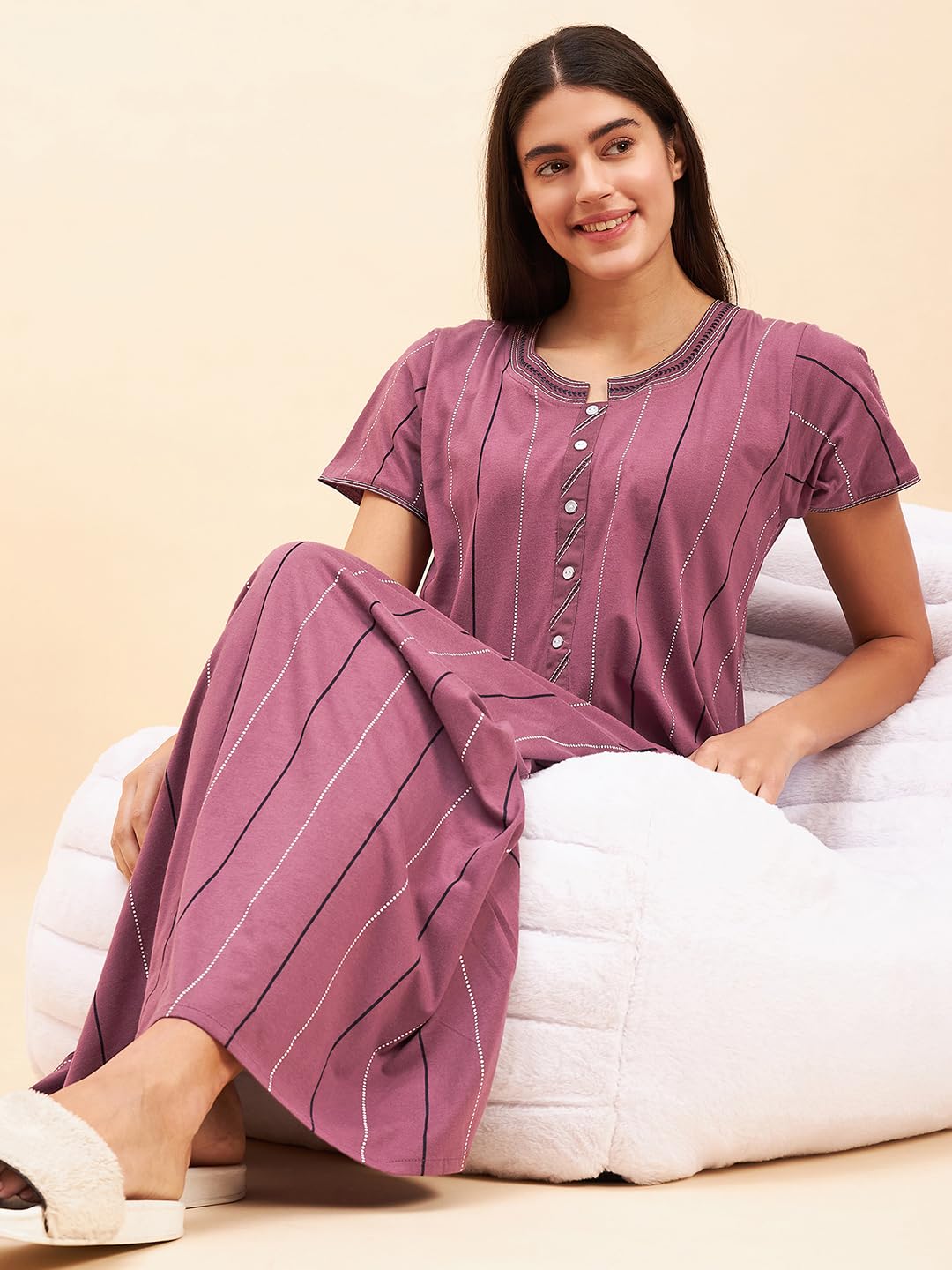 Sweet Dreams Women's Cotton Maxi Casual Nightgown (OCW-3466 Purple XL)