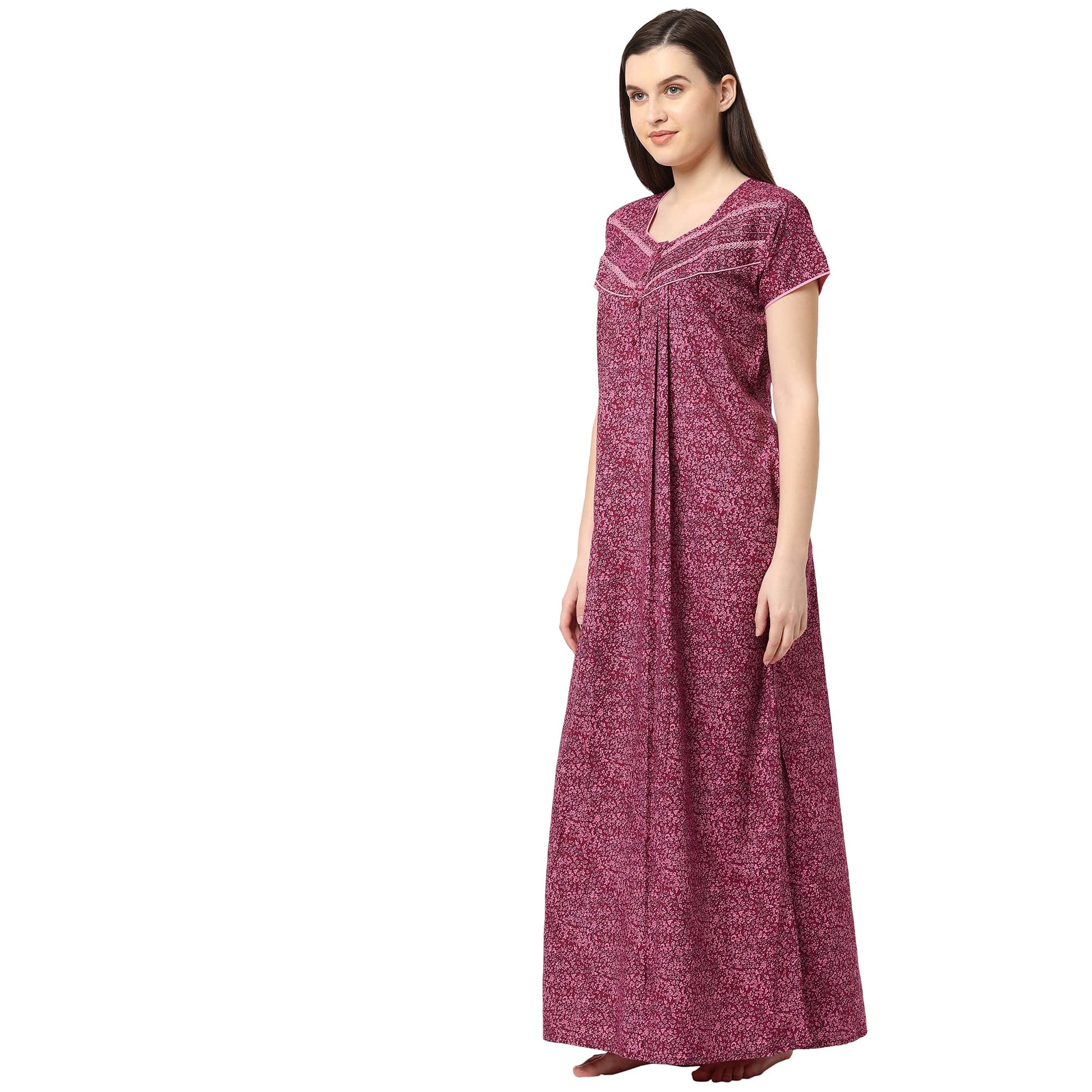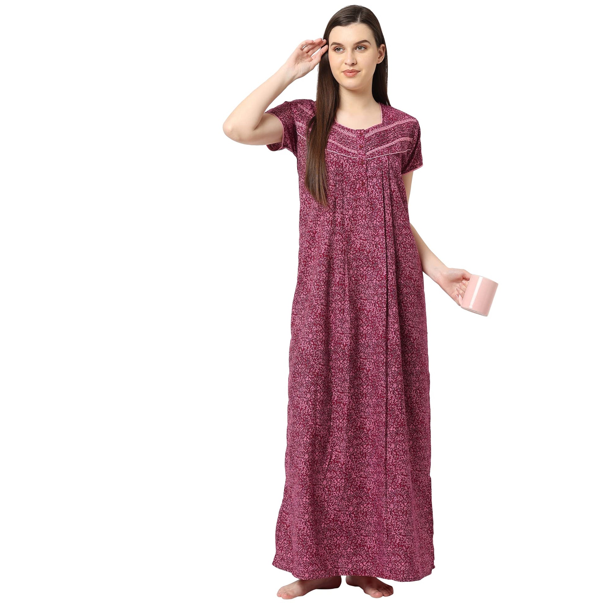 • Introducing our elegant and comfortable long summer nighty for women. • Made from a soft and lightweight fabric, this nighty will keep you cool and comfortable. • The loose and flowy fit, ensures a relaxed and comfortable fit for all body types. • Available in a range of beautiful colours, this nighty is perfect for lounging at home, sleeping • The intricate lace trim adds a touch of femininity and sophistication, making this nighty a stylish and practical addition to your summer wardrobe. • With its easy-care instructions - simply machine wash and tumble dry - this nighty is a convenient and low maintenance choice • Fabric Type- Cotton Blend • Pattern-Floral Print • Short Sleeves • Closure with Button