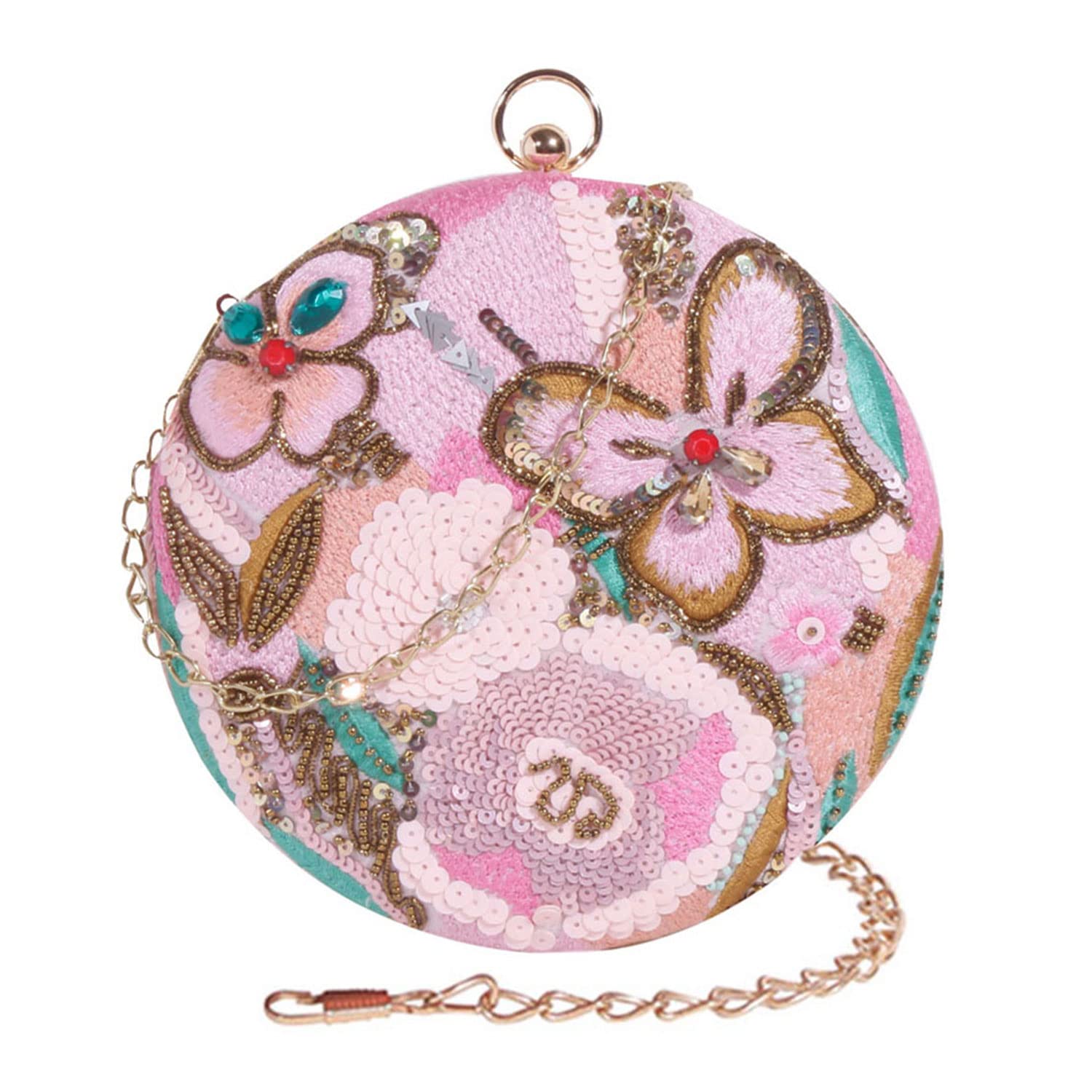SWISNI Light Pink Modish Handmade Embroidery Round Shape Clutch Bag For Party II Women's Traditional Designer Clutch For Women & Girls II EMBROIDERED CLUTCHES