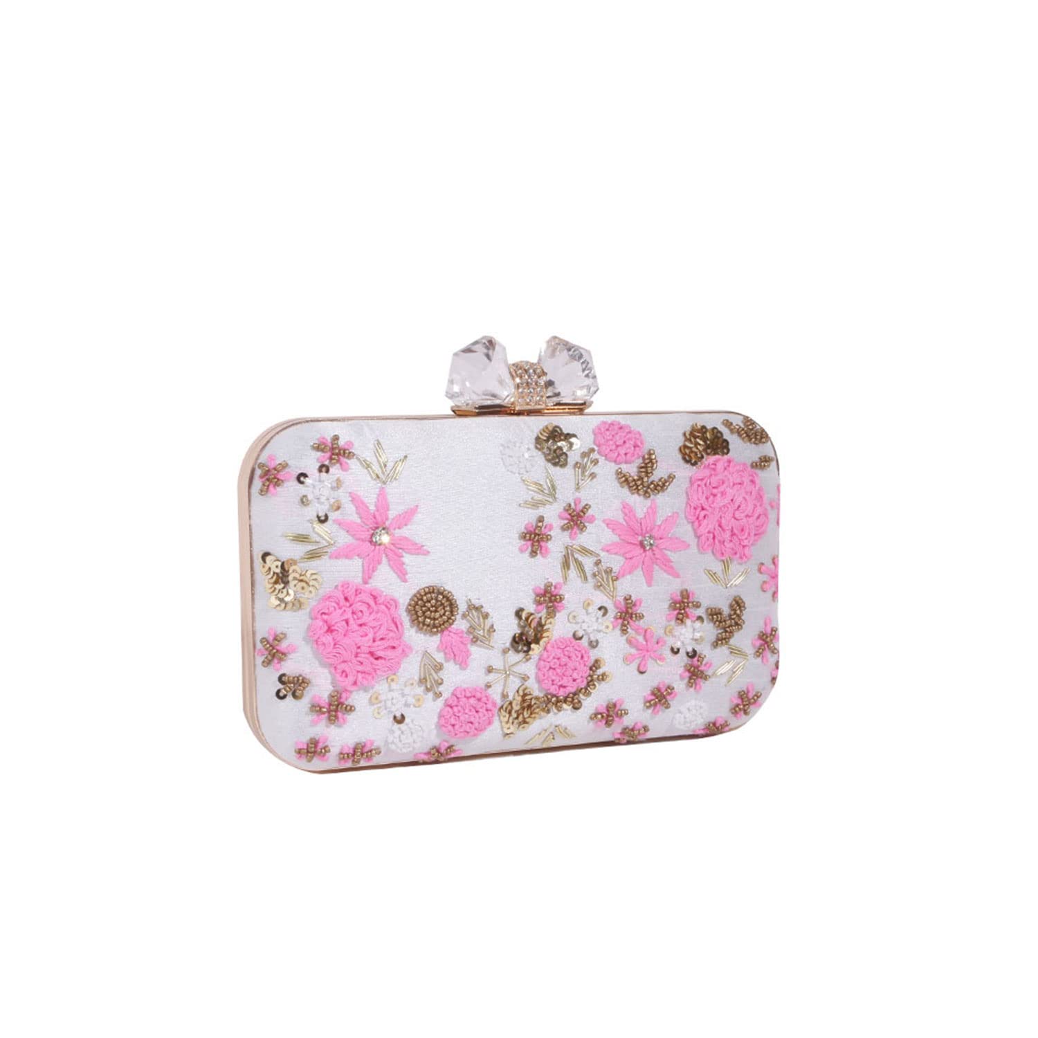 SWISNI White White thread embroidered clutch bag II Women's Traditional Designer Clutch For Women & Girls II EMBROIDERED CLUTCHES