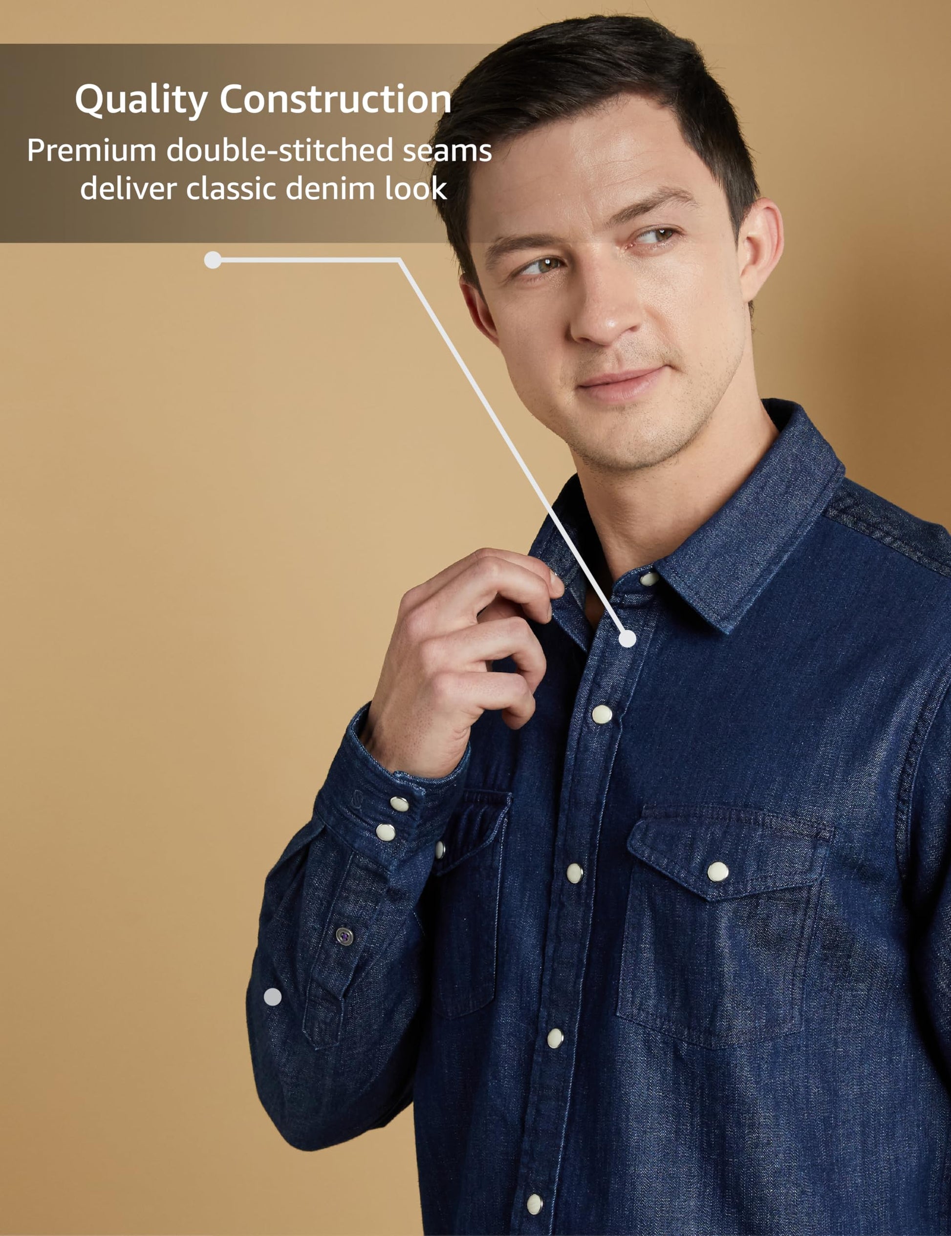 Symbol Premium Men's Casual Cotton Denim Shirt (Regular Fit) (Dark Rinse_L)