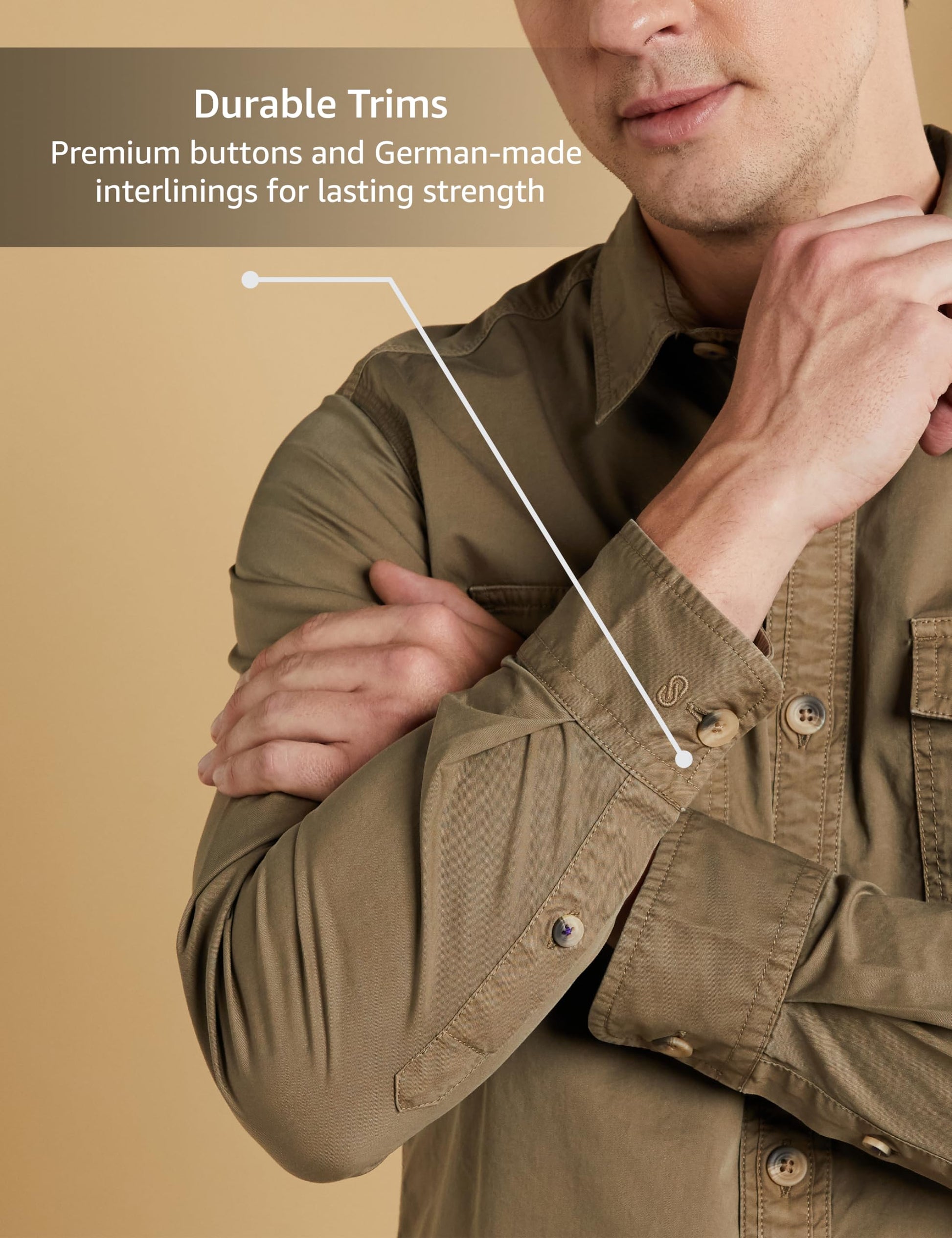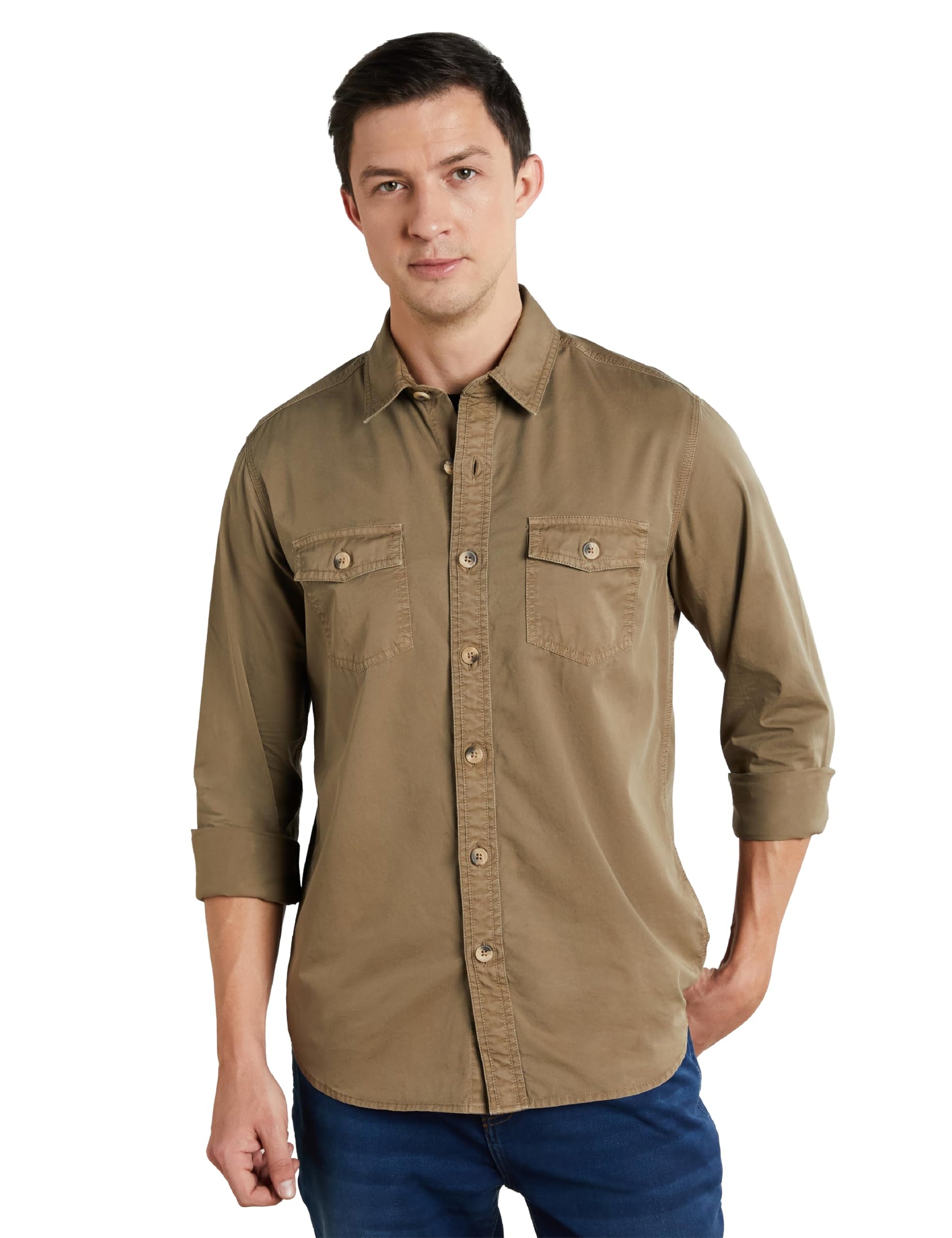 Symbol Premium Men's Casual Washed Cotton Twill Shirt (Regular Fit) (Khaki_L)