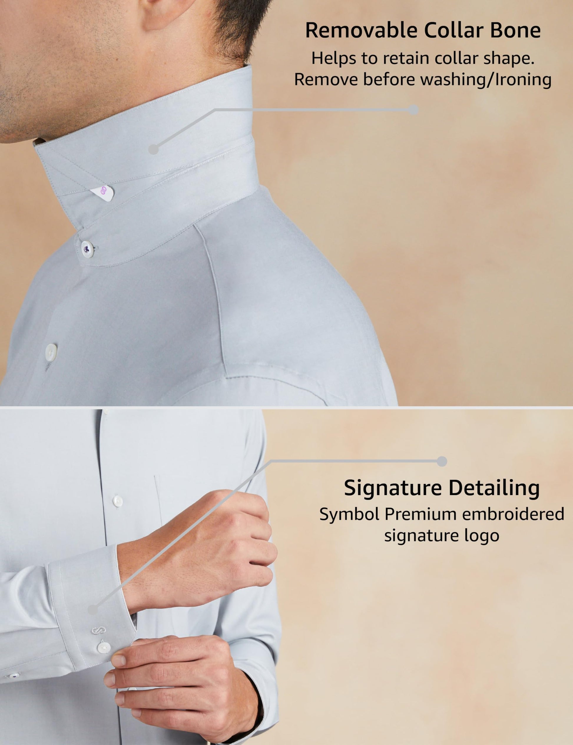 - Removable collar bones before washing. Insert them back after washing and ironing the garment