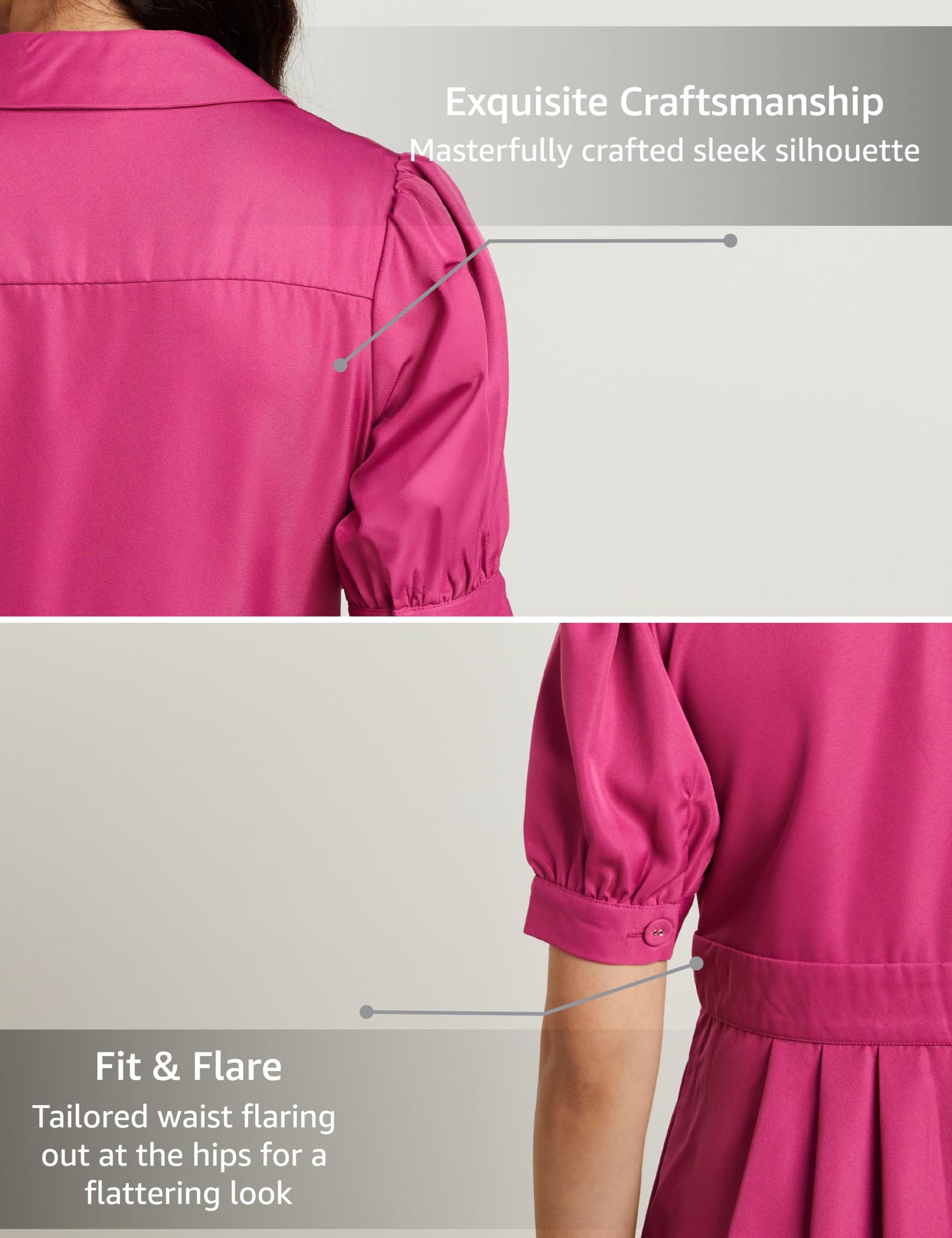 Symbol Premium Women's 'Desk-to-Dinner' Fit & Flare Wrap Dress (Midi Length | Stylish) (SBP-SS24-WDR-607_Magenta Pink_XL)