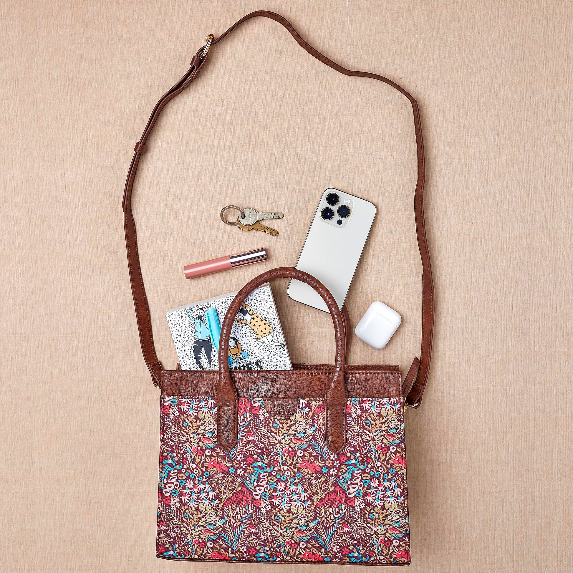Fashion meets utility with Chumbak's hand bag! This spacious single compartment bag comes with shoulder straps as well as an adjustable sling strap for convenience. Carry all your essentials without compromising on fashion.