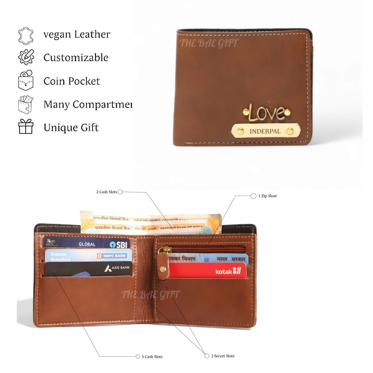 The Bae Gift Men Leather Personalized Wallet I Customized Slim Stylish Purse with Name & Charm I Unique Birthday Anniversary Gift Love Husband Employees Clients