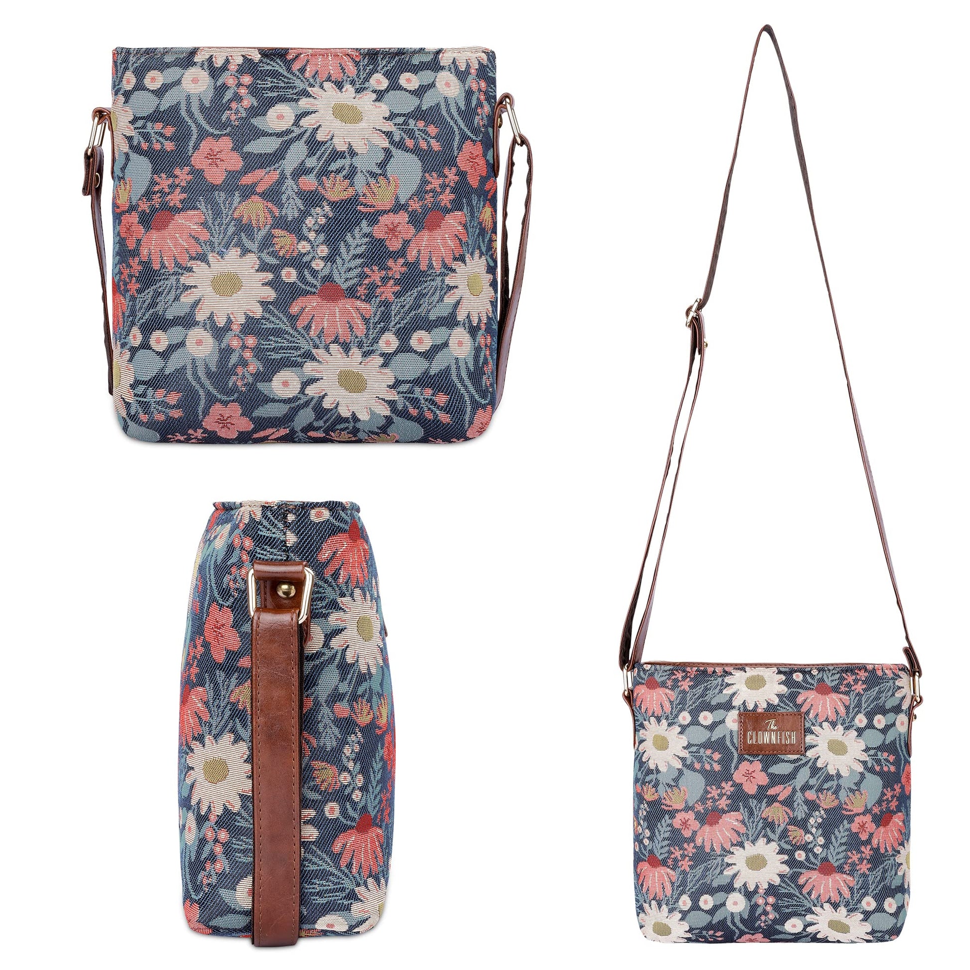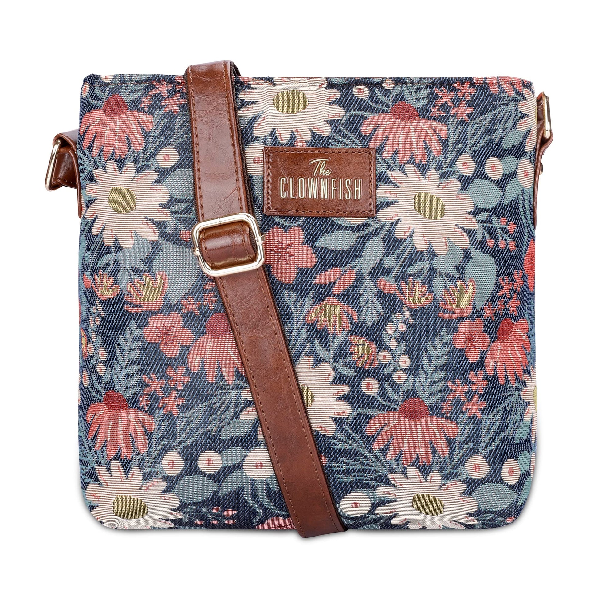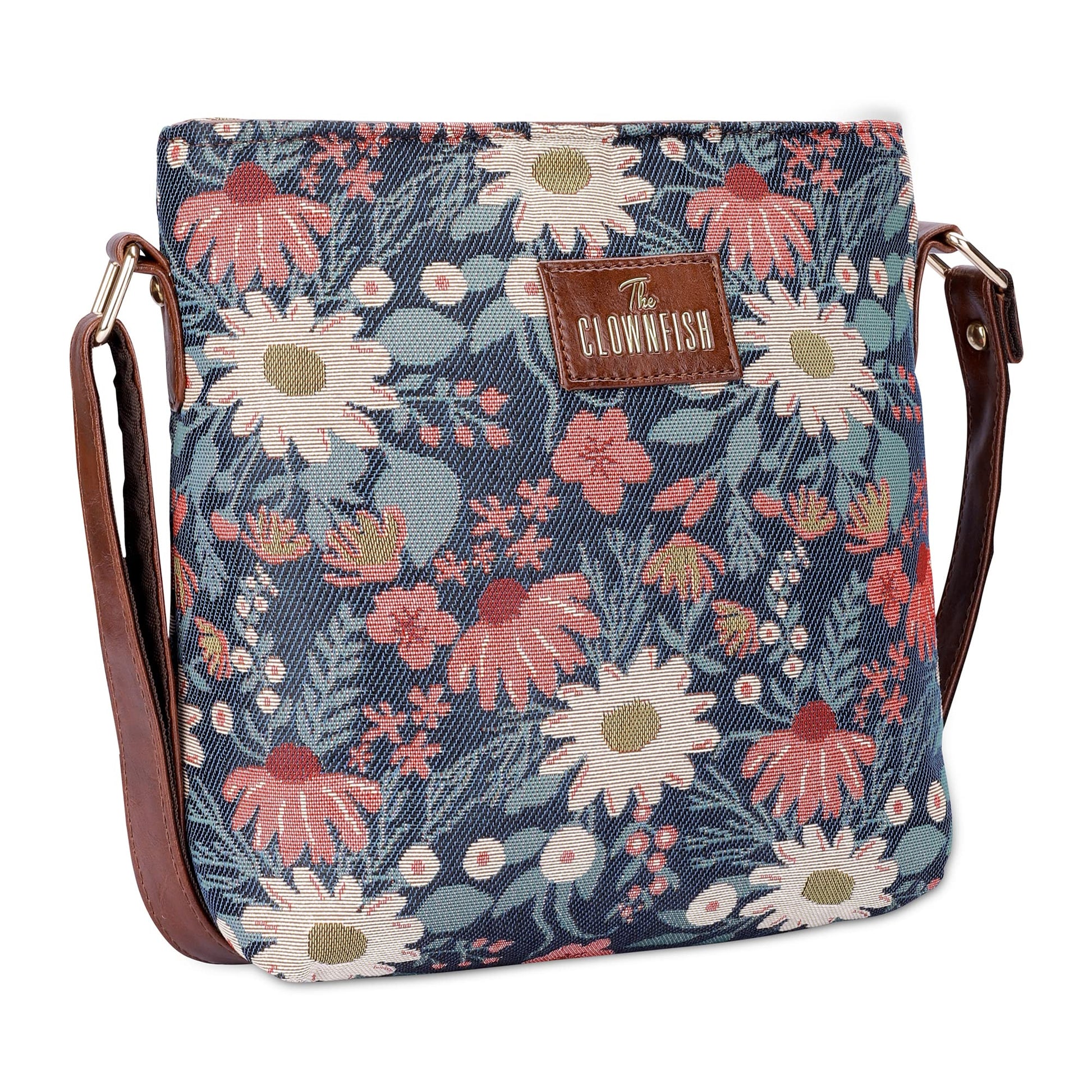 THE CLOWNFISH Linda Series Sling for Women Casual Ladies Single Shoulder Bag For Women Crossbody Bag for College Girls (Purple-Floral)