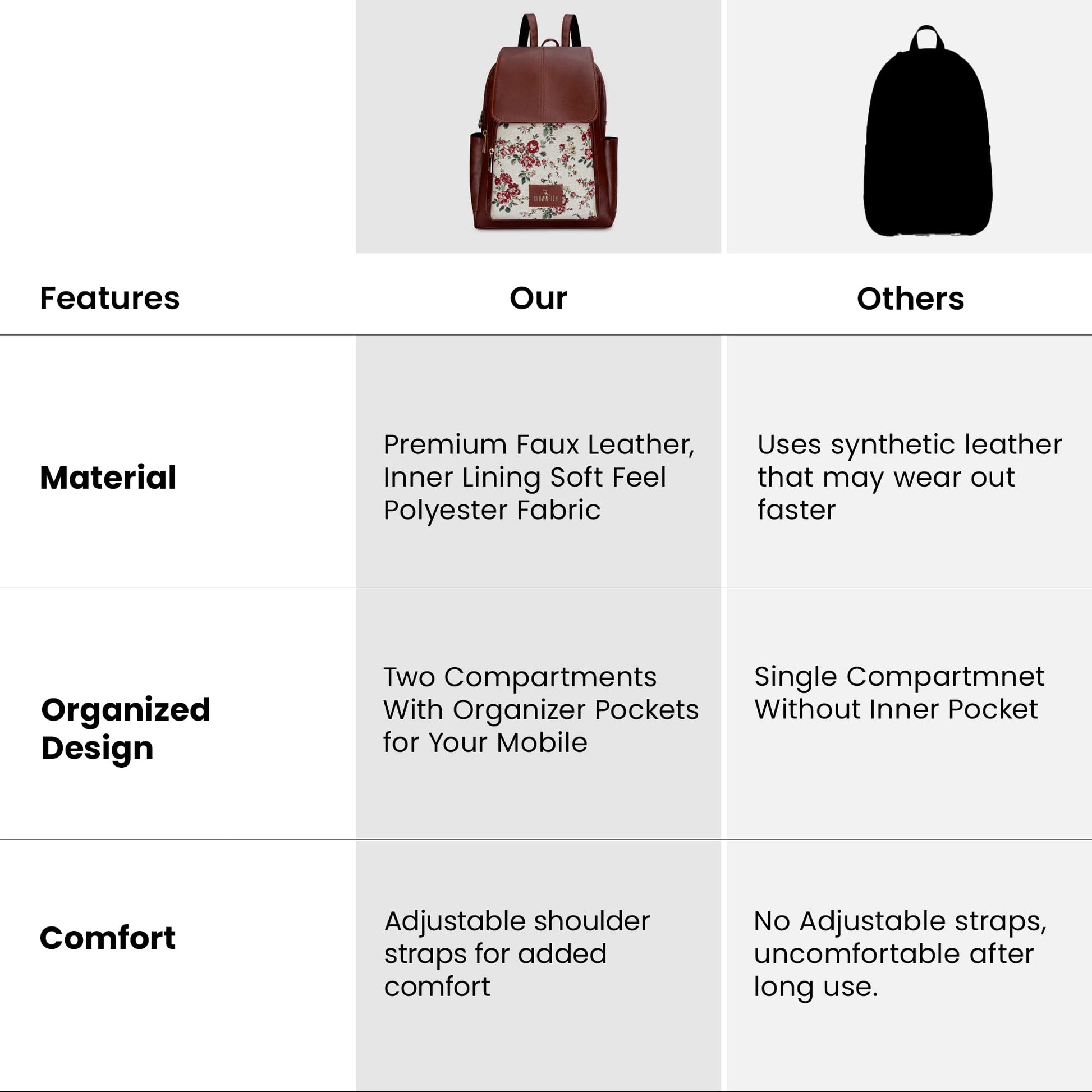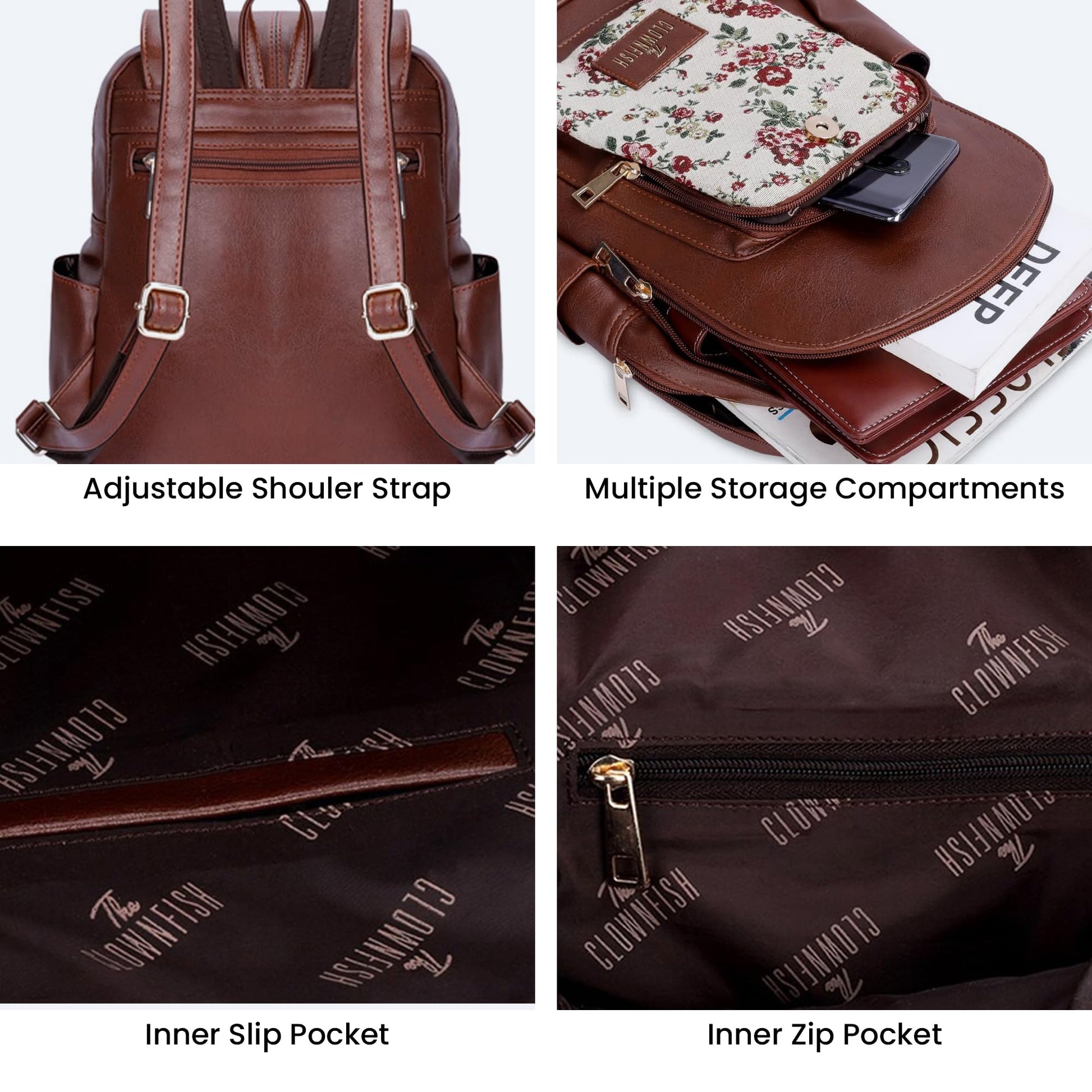 THE CLOWNFISH Medium Size Minerva Faux Leather & Tapestry Women's Standard Backpack College School Bag Casual Travel Standard Backpack For Ladies Girls (White- Floral), 10 Litre