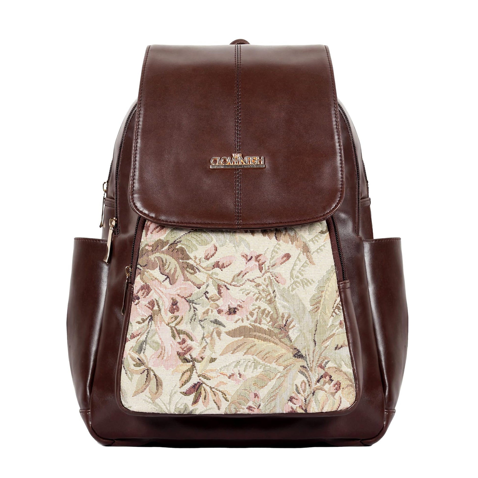 THE CLOWNFISH Minerva Faux Leather & Tapestry Women's Standard Backpack College School Bag Casual Travel Standard Backpack For Ladies Girls (Navyblue- Floral), 10 Litre