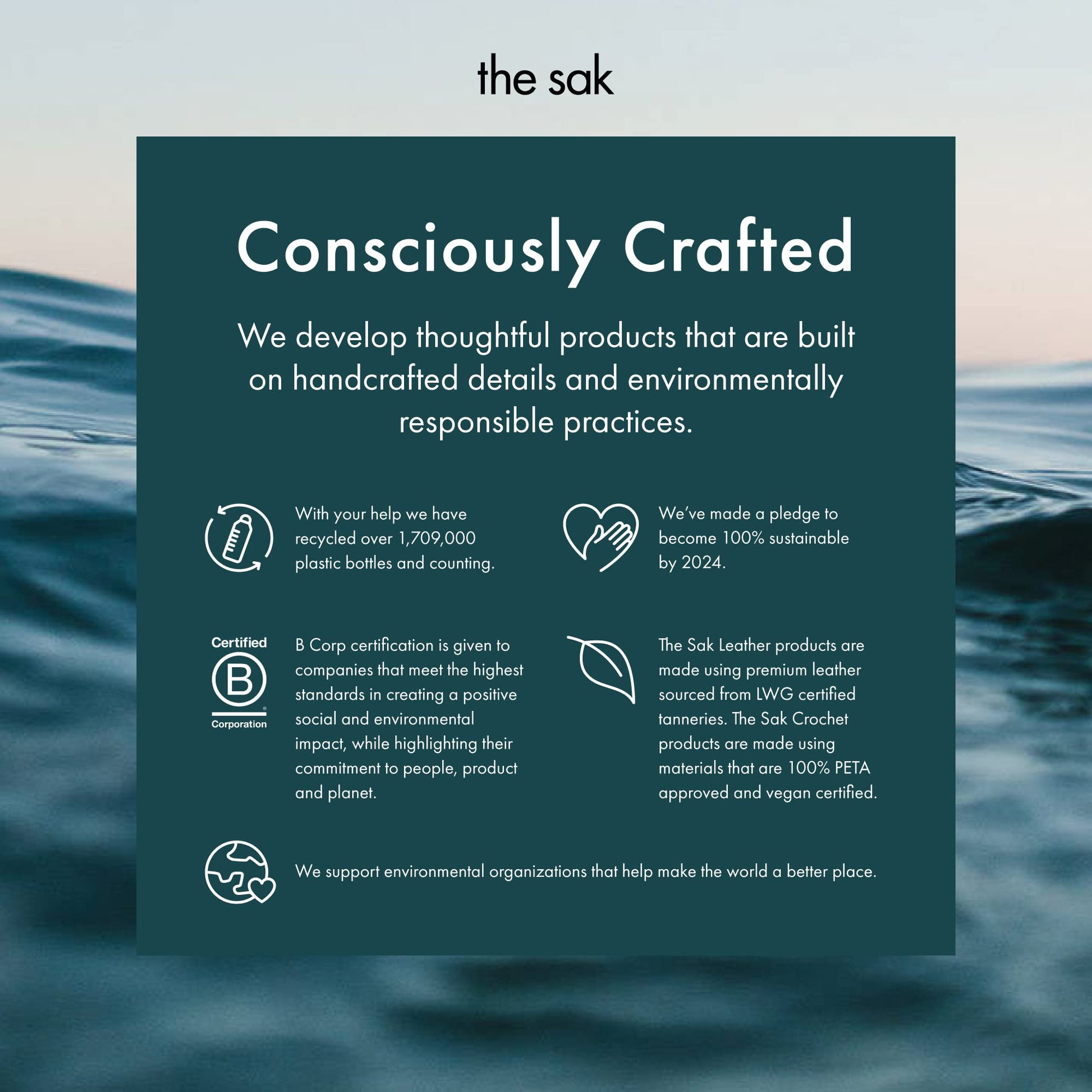 - THE SAK: We've always been about more than bags, capturing our love of hand-crafted, textural designs. We are B Corp certified, given to companies that meet the highest standards in creating a positive social & environmental impact