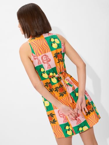 The Souled Store Ambrosia Women and Girls Sleeveless Collared Neck Button Front All Over Printed Cotton Blend Mini Shirt Dresses