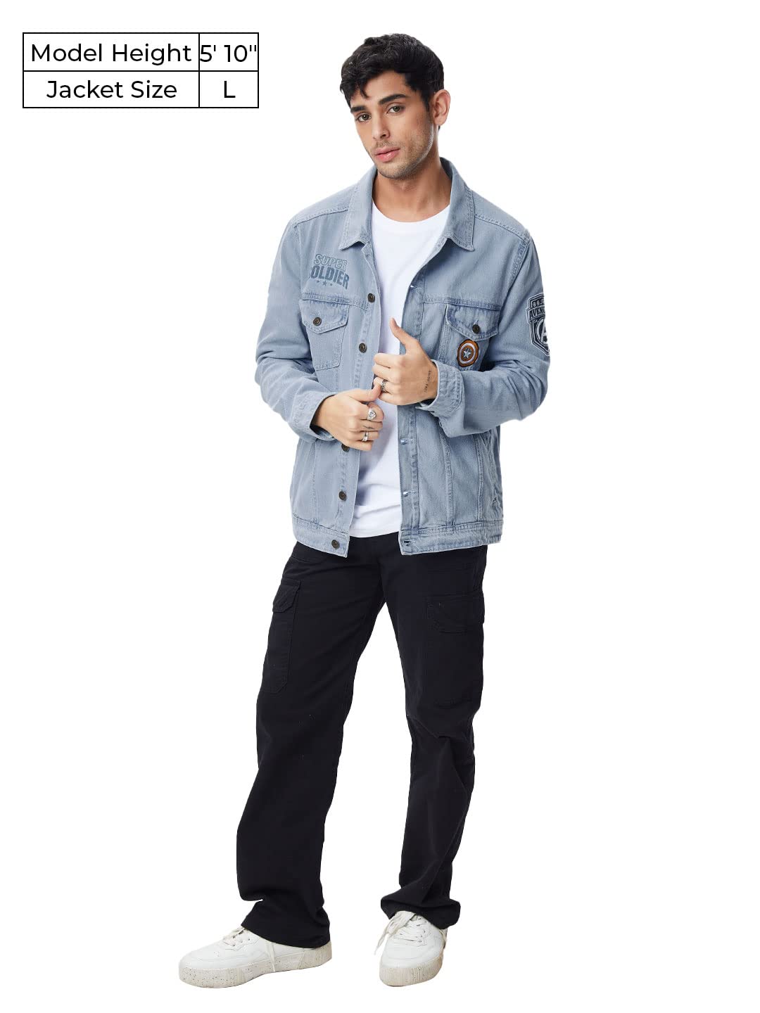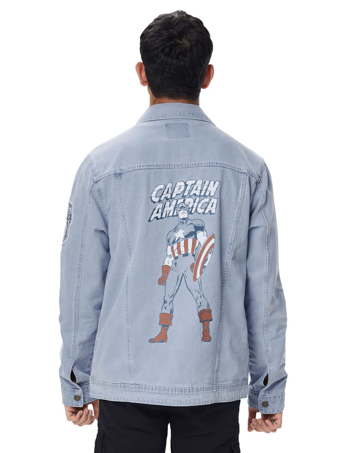 The Souled Store Captain America: OG Mens & Boys Regular Fit Graphic Printed Full Sleeve Cotton Blue Denim Jackets Jackets Winter Coats Outerwear Bomber Puffer Windbreaker Hooded Quilted Lightweight