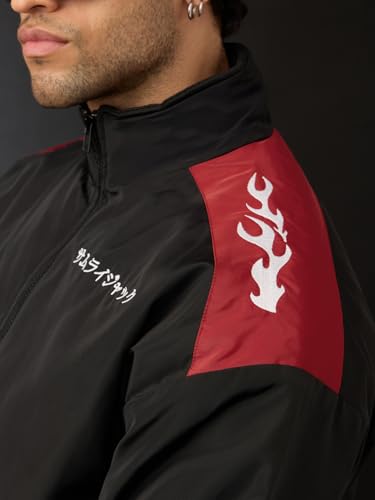 - BOLD GRAPHIC PRINTS: Features striking all-over graphic prints and Japanese text embroidery, making it a standout piece for anime fans and streetwear enthusiasts.