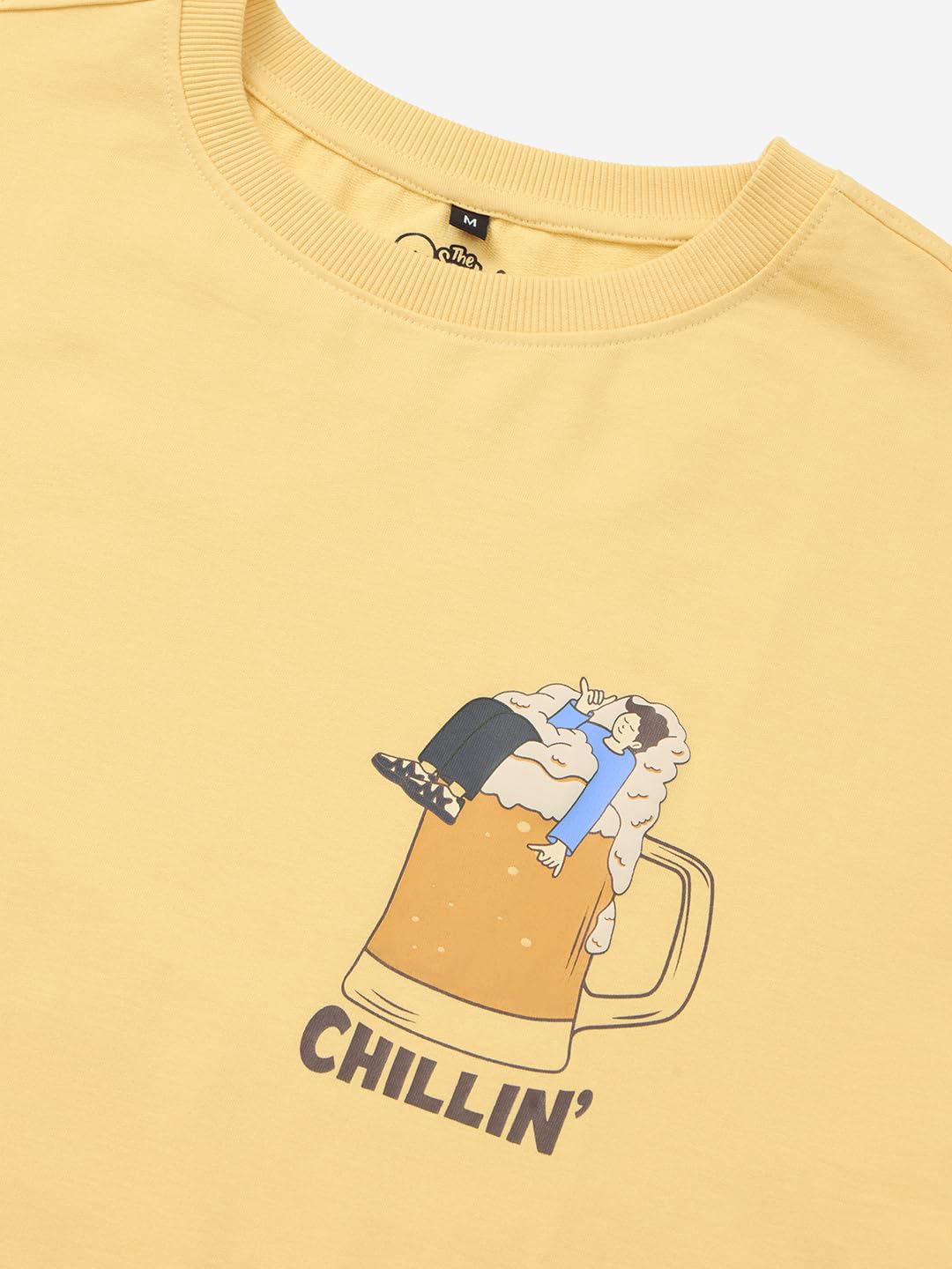 The Souled Store Explore The Unseen Men and Boys Short Sleeve Round Neck Green Embroided Cotton Oversized T-Shirts