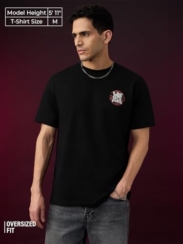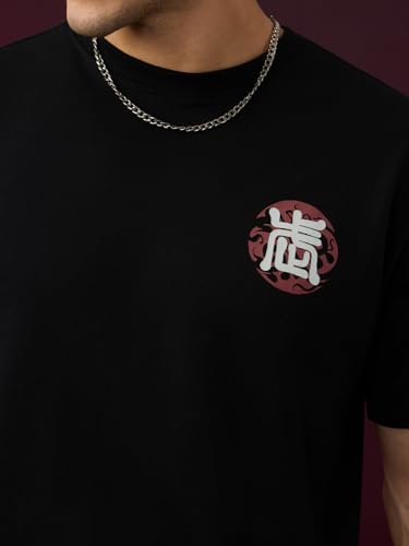 The Souled Store Kung Fu Panda: Glow Po Men and Boys Short Sleeves Round Neck Black Graphic Printed Dragon Graphic Casual Drop Shoulder Cotton Oversized T-Shirt