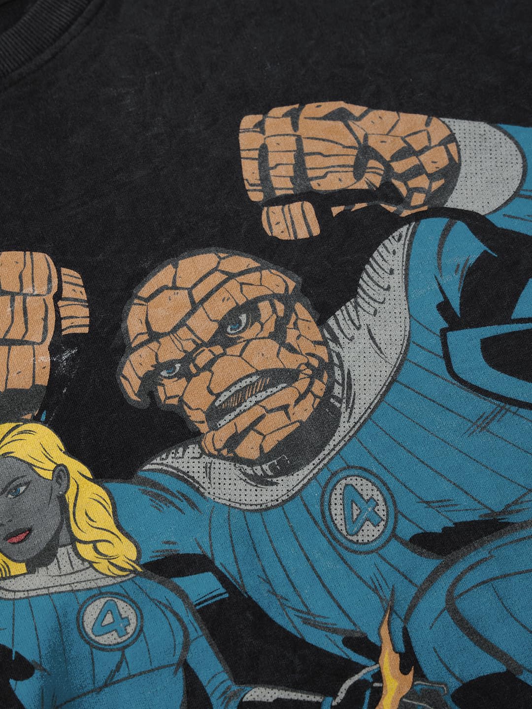 - BOLD GRAPHIC PRINT: Features a large, full-front Fantastic Four design with a washed vintage effect, perfect for fans of Marvel's iconic superhero team.