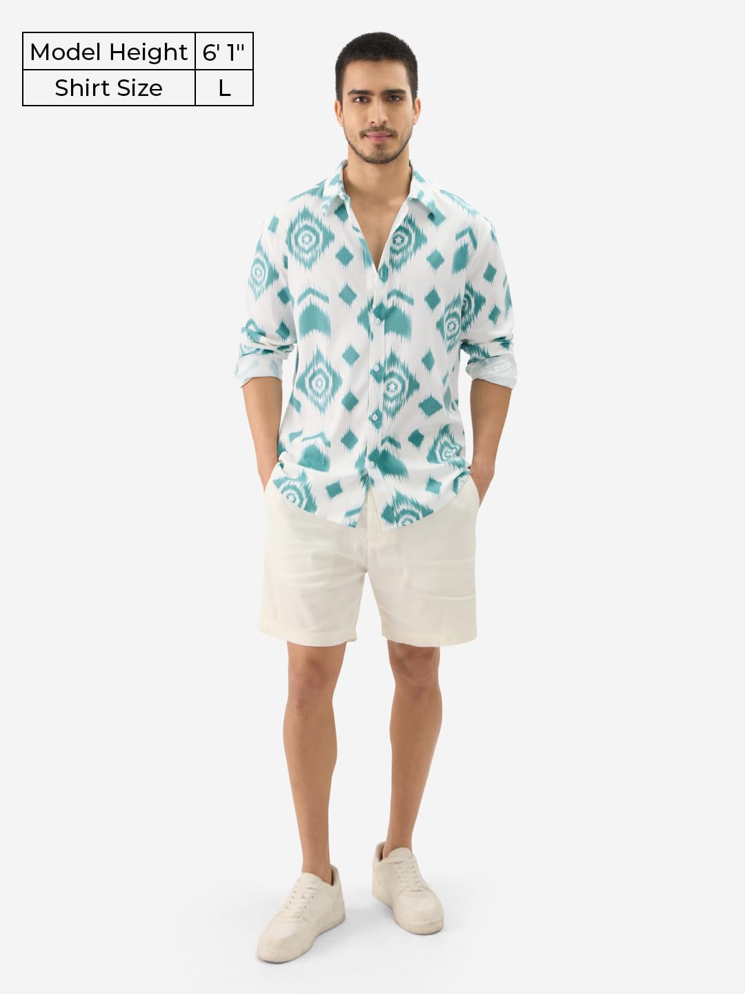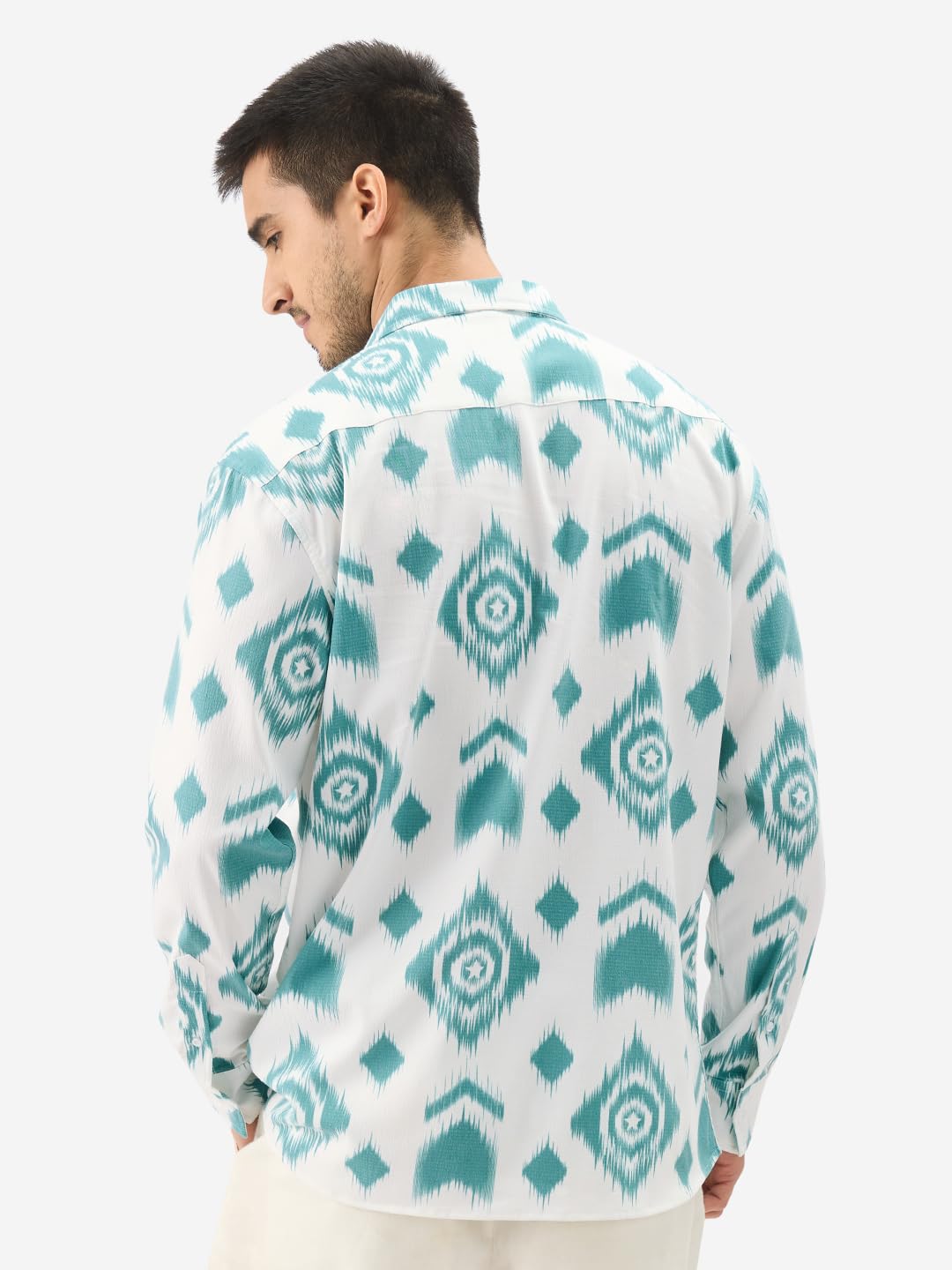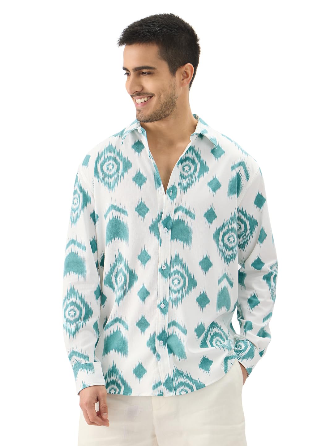 The Souled Store Official Captain America: Indie Pattern Long Sleeve Collared Neck Button Down Regular Fit Cotton Shirts for Mens & Boys- Heroic Style for Every Day White