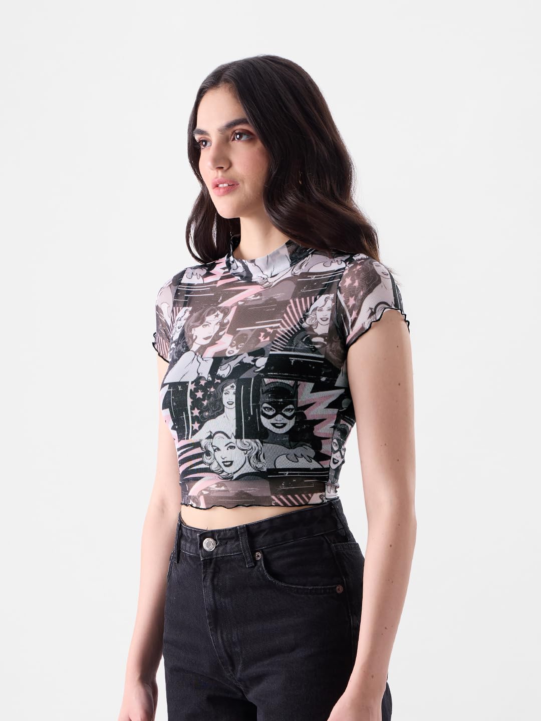 The Souled Store Official DC: Supergirls Women Slim fit Half Sleeve Cotton Multi Color Cropped Tops Crop Top for Girl Women Round Turtle Halter Neck Printed Shoulder Rib Knit Tank Top