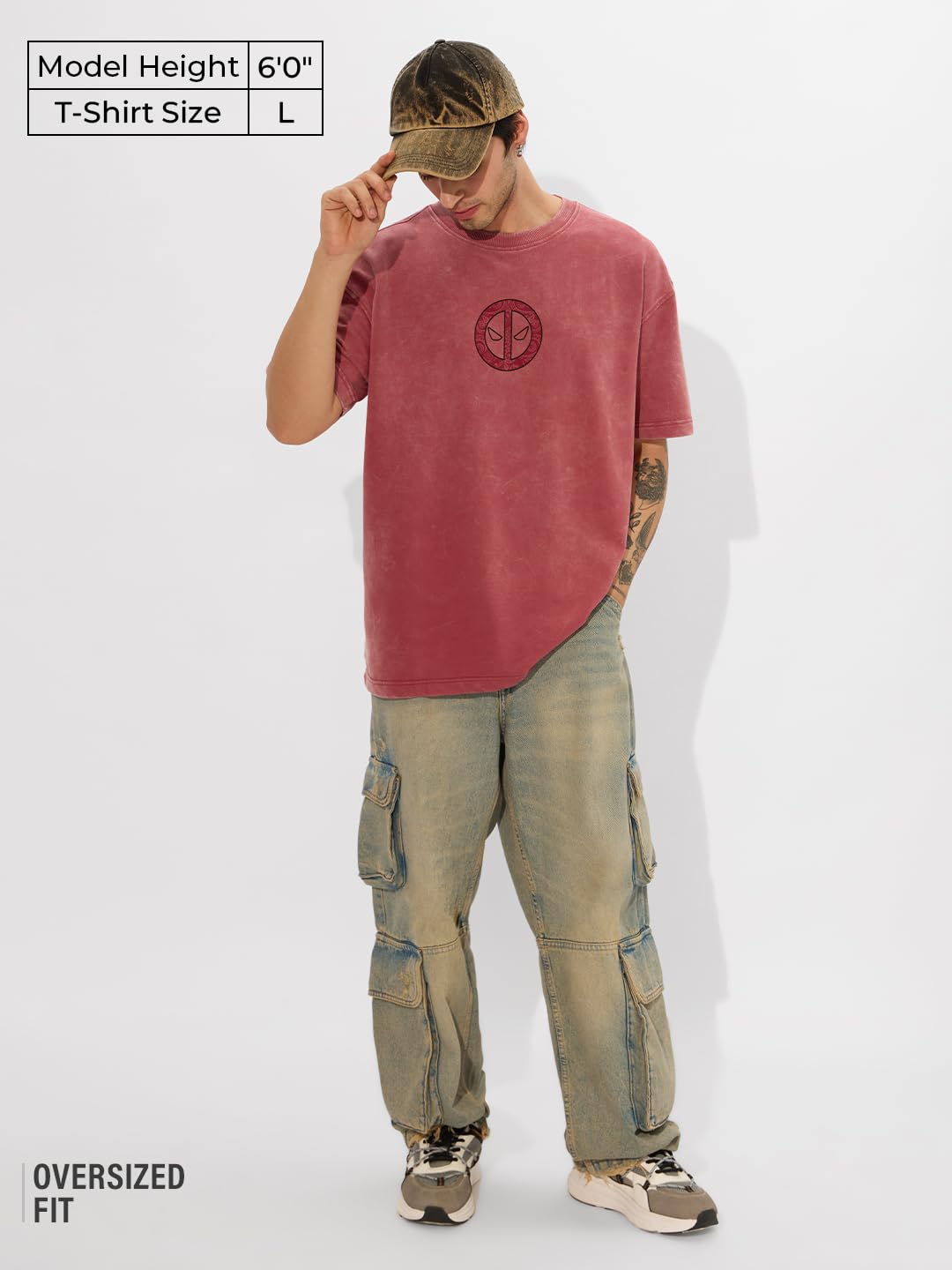 The Souled Store Official Deadpool: Anti-Hero Men and Boys Short Sleeves Round Neck Pink Graphic Printed Cotton Oversized T-Shirts