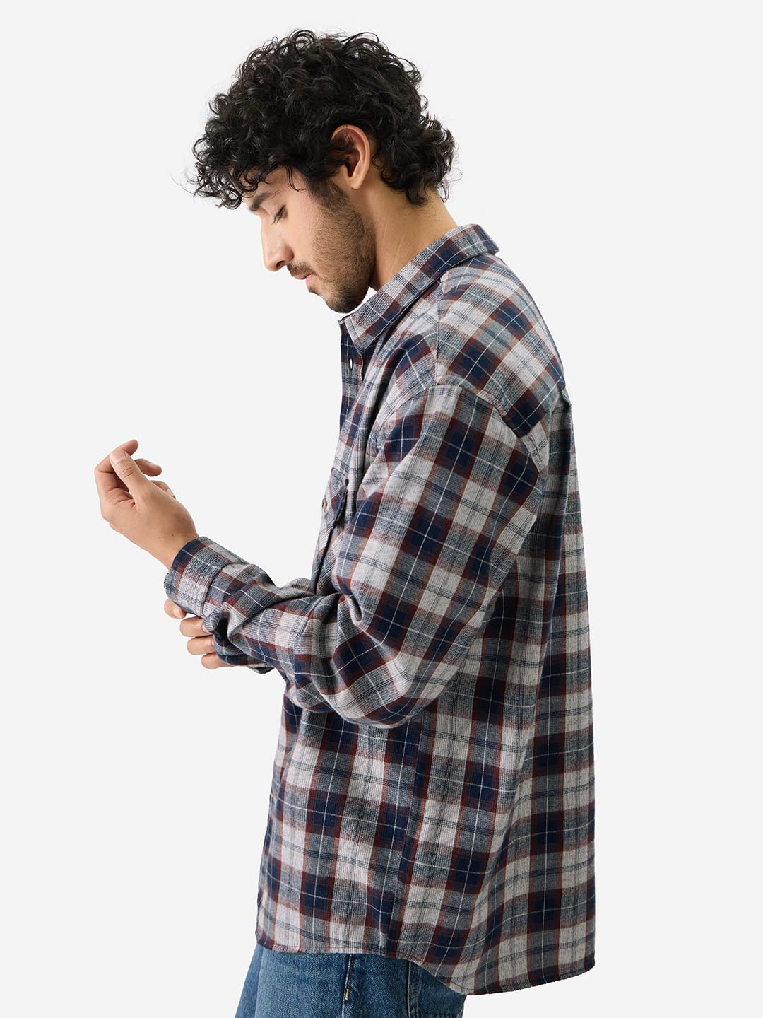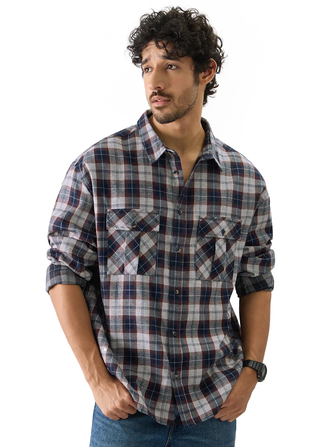The Souled Store Plaid Insignia Long Sleeve Collared Neck Cotton Button-Down Relaxed Fit Shirts for Men's & Boy's- Casual Comfort with Timeless Style Multicolour