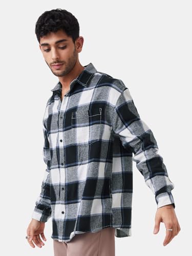 The Souled Store Plaids: Black, White Men and Boys Long Sleeves Collared Neck Button Front Cotton Relaxed Shirts