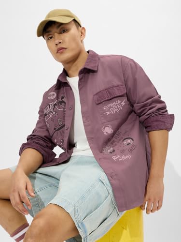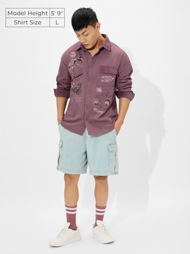 The Souled Store Rick & Morty: Cosmic Adventure Men and Boys Long Sleeves Collared Neck Button Front Purple Graphic Printed Cotton Relaxed Fit Shirts