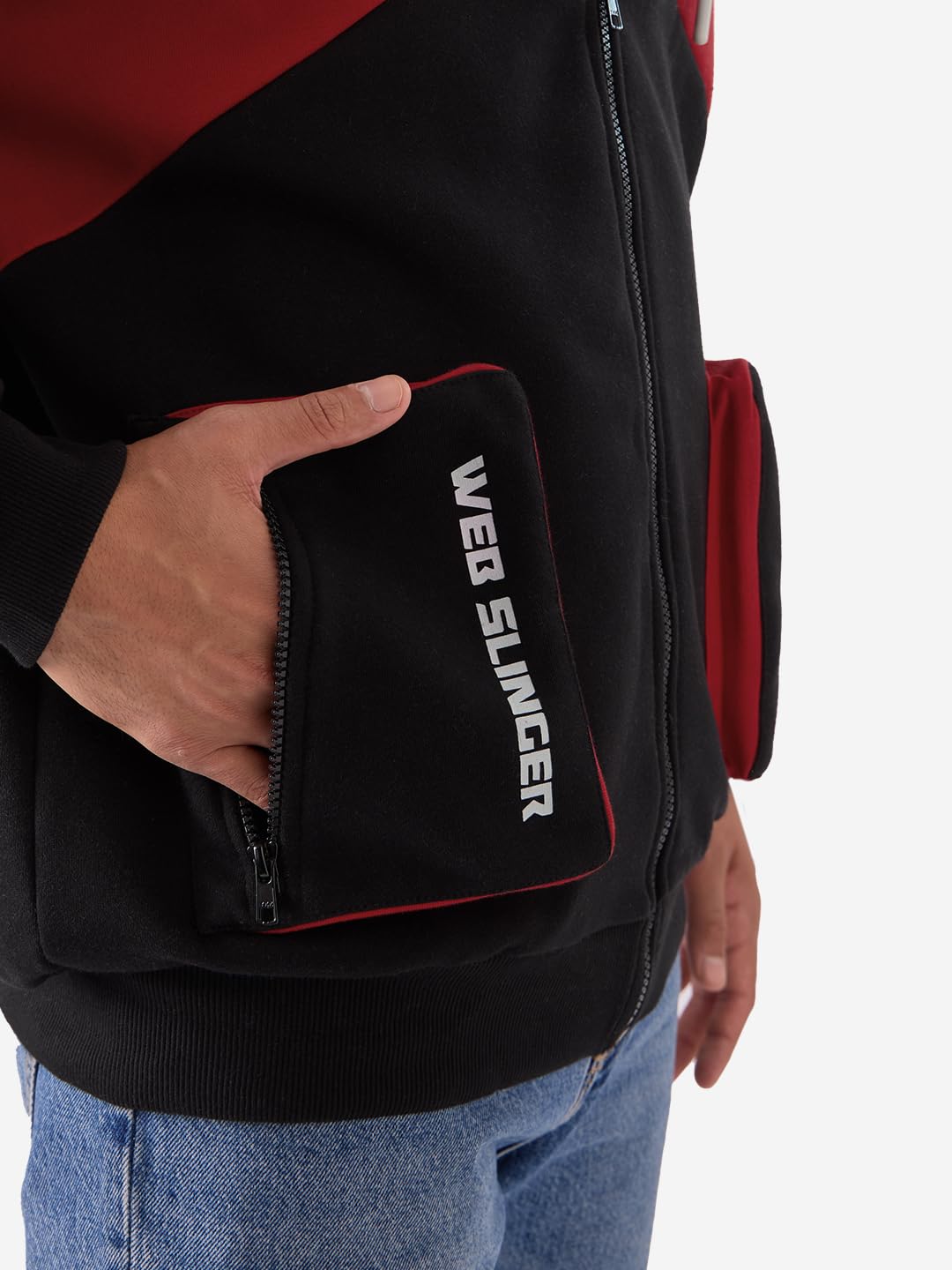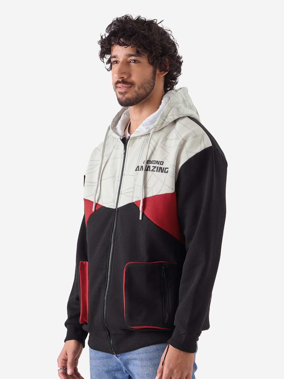 The Souled Store Spiderman: Beyond Amazing Men and Boys Hooded Neck Long Sleeve Graphic Printed Black and Grey Oversized Fit Zipper Hoodie Oversized Hoodies Sweatshirts Pullovers Graphic Printed