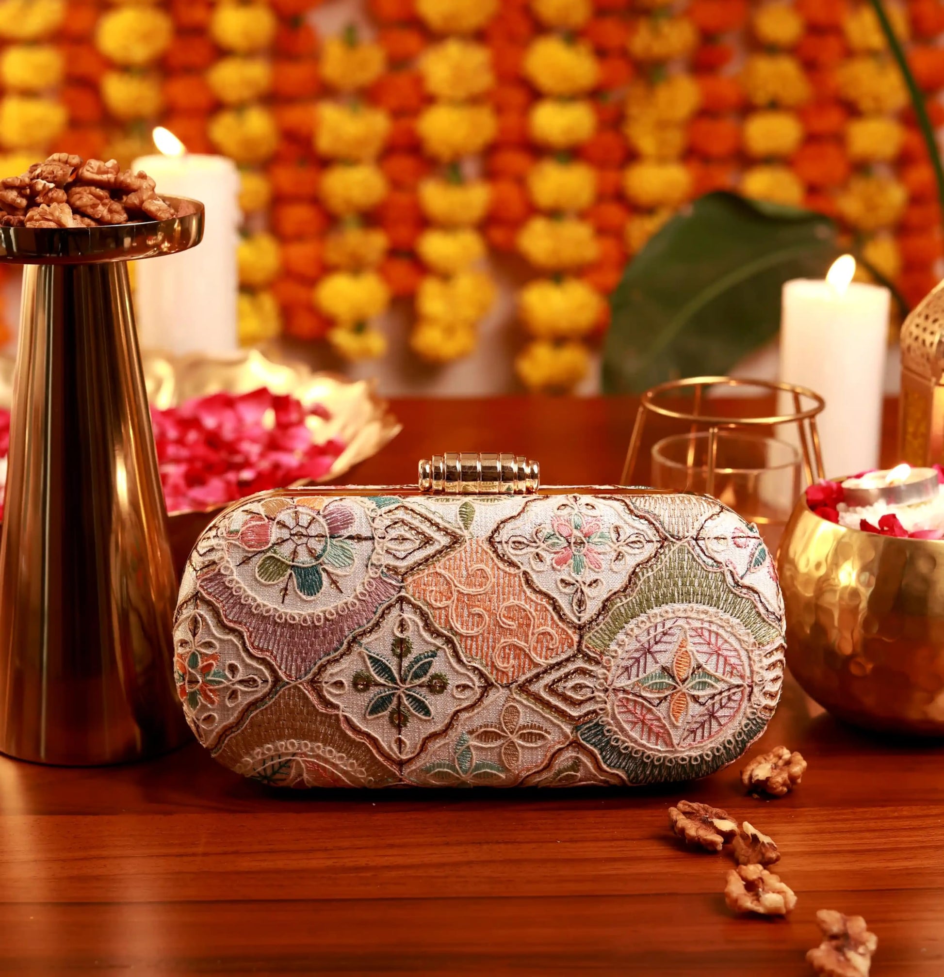 THE TAN CLAN Mughal Long Clutch for women Purses Luxury Evening Handbags for ladies with Detachable Handle